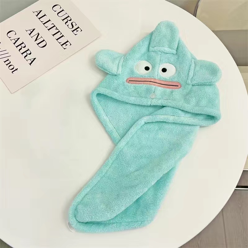 现货卡通毛巾浴巾可穿裹浴袍珊瑚绒干发帽发带三件套柔软亲肤浴裙
