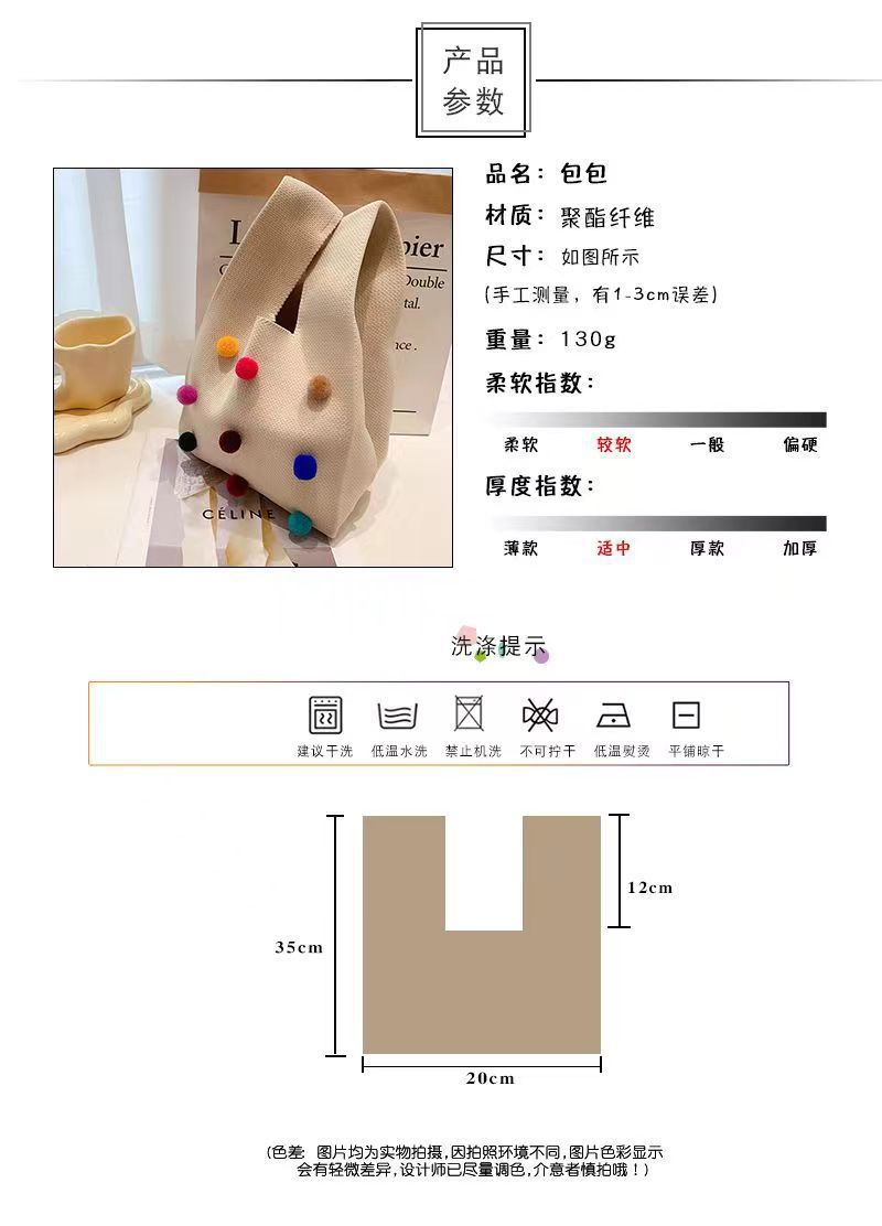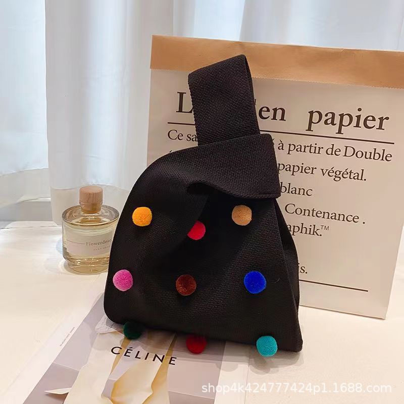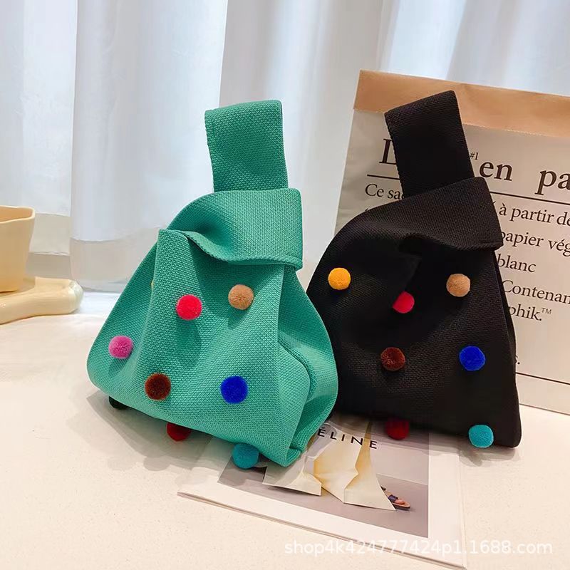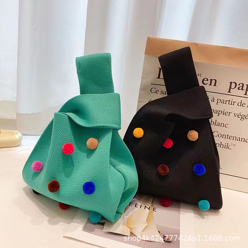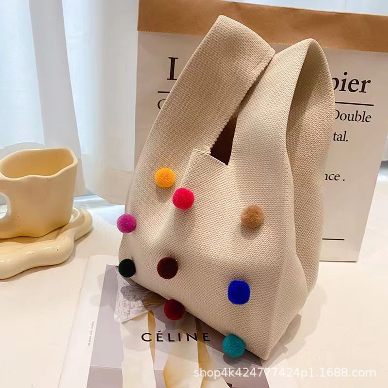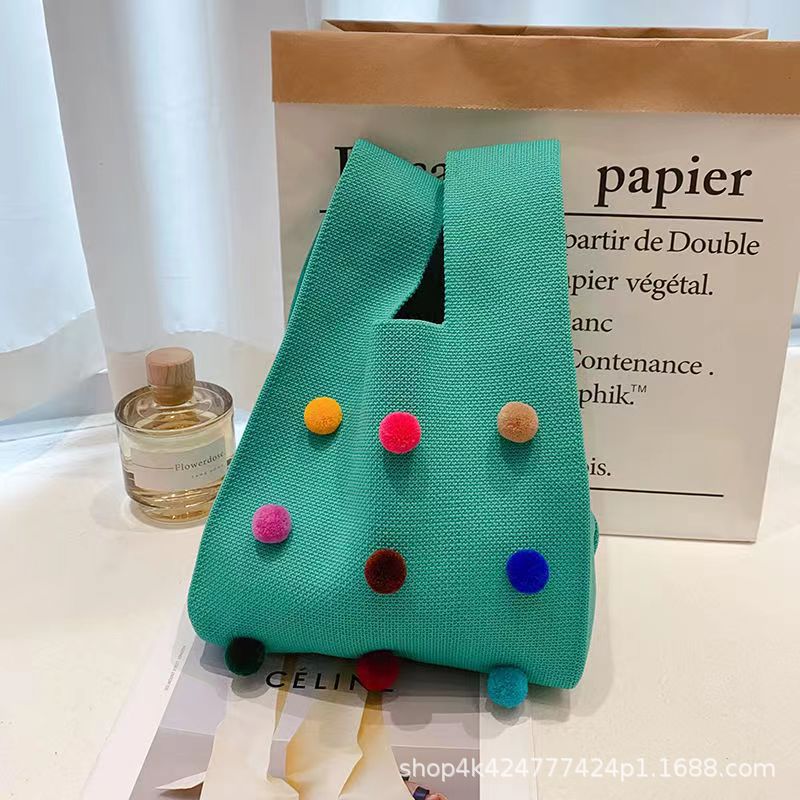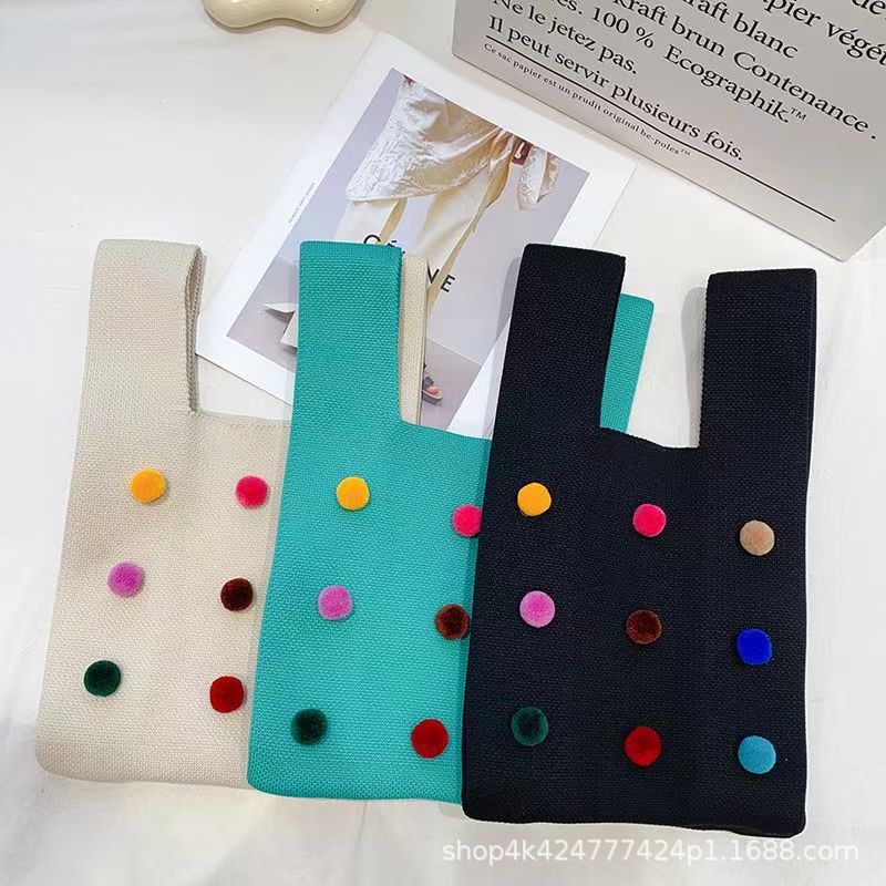 韓国のインスタ風ニットバッグ、女性用、実用的で多用途なハンドバッグ、ベスト、ベスト型バッグ、リストバッグ、ポンポンバッグ