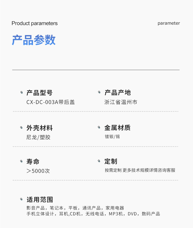 3513横型dc小型電源コネクタ母座CX-DC-003蓋付き電源コネクタソケット卸売り