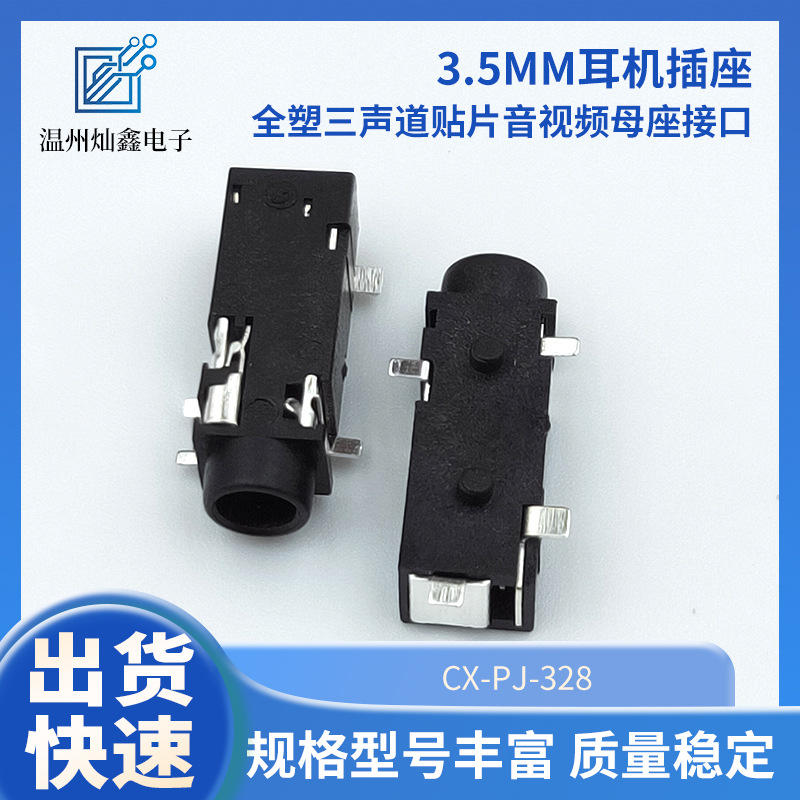 CX-PJ-327B 3.5mmイヤホンソケット2チャンネル金メッキ直挿し全プラスチック音声ビデオ接続インターフェース母座