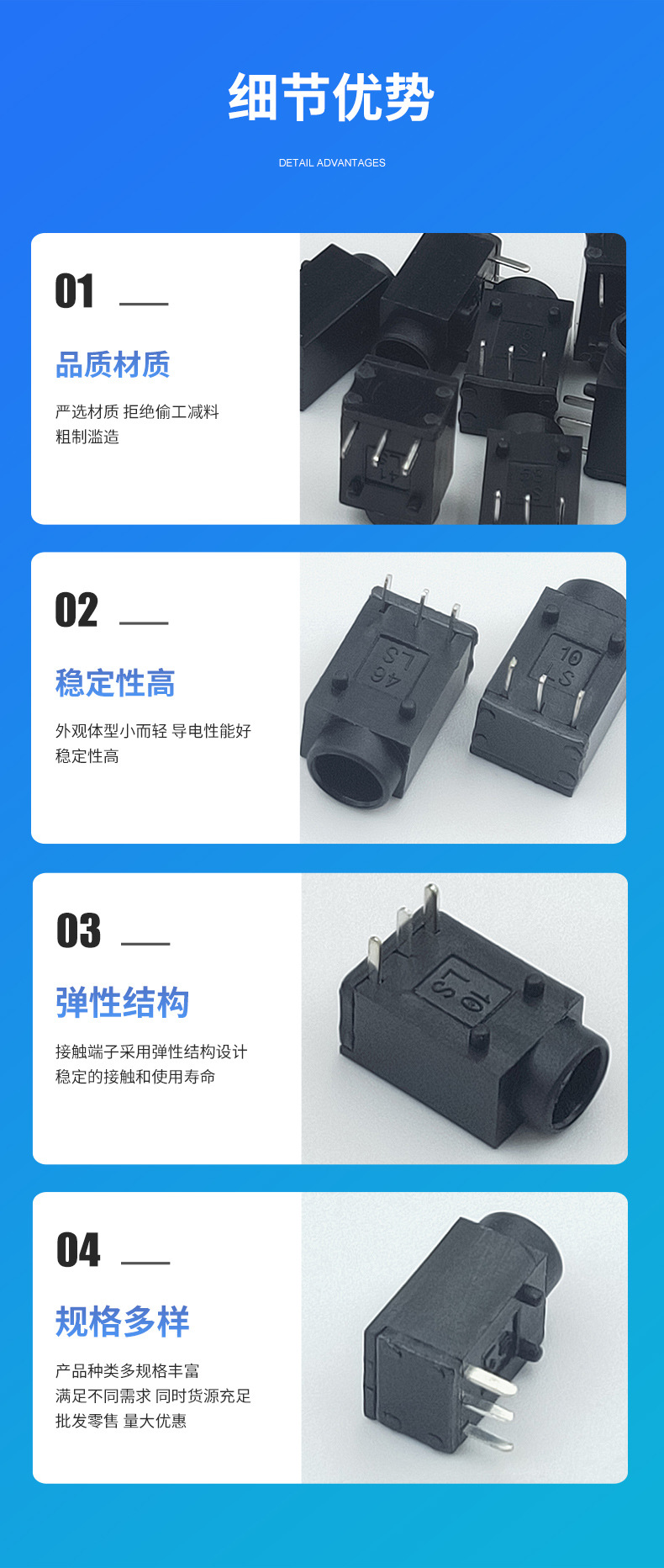 CX-PJ-325 3.5mm横型イヤホンソケット2チャンネル3p/5p音声ビデオスイッチコネクタ卸売り