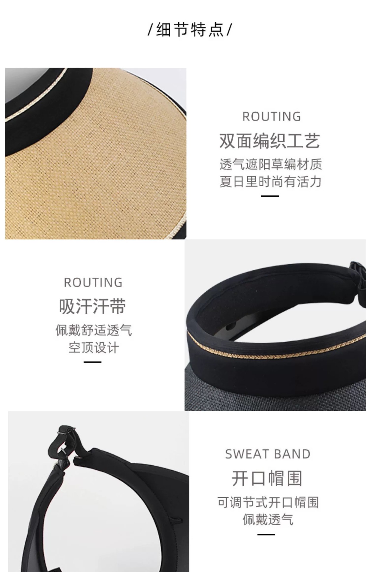 遮阳防晒草帽夏季女新款空顶帽子女士海边沙滩太阳帽大檐遮脸发箍