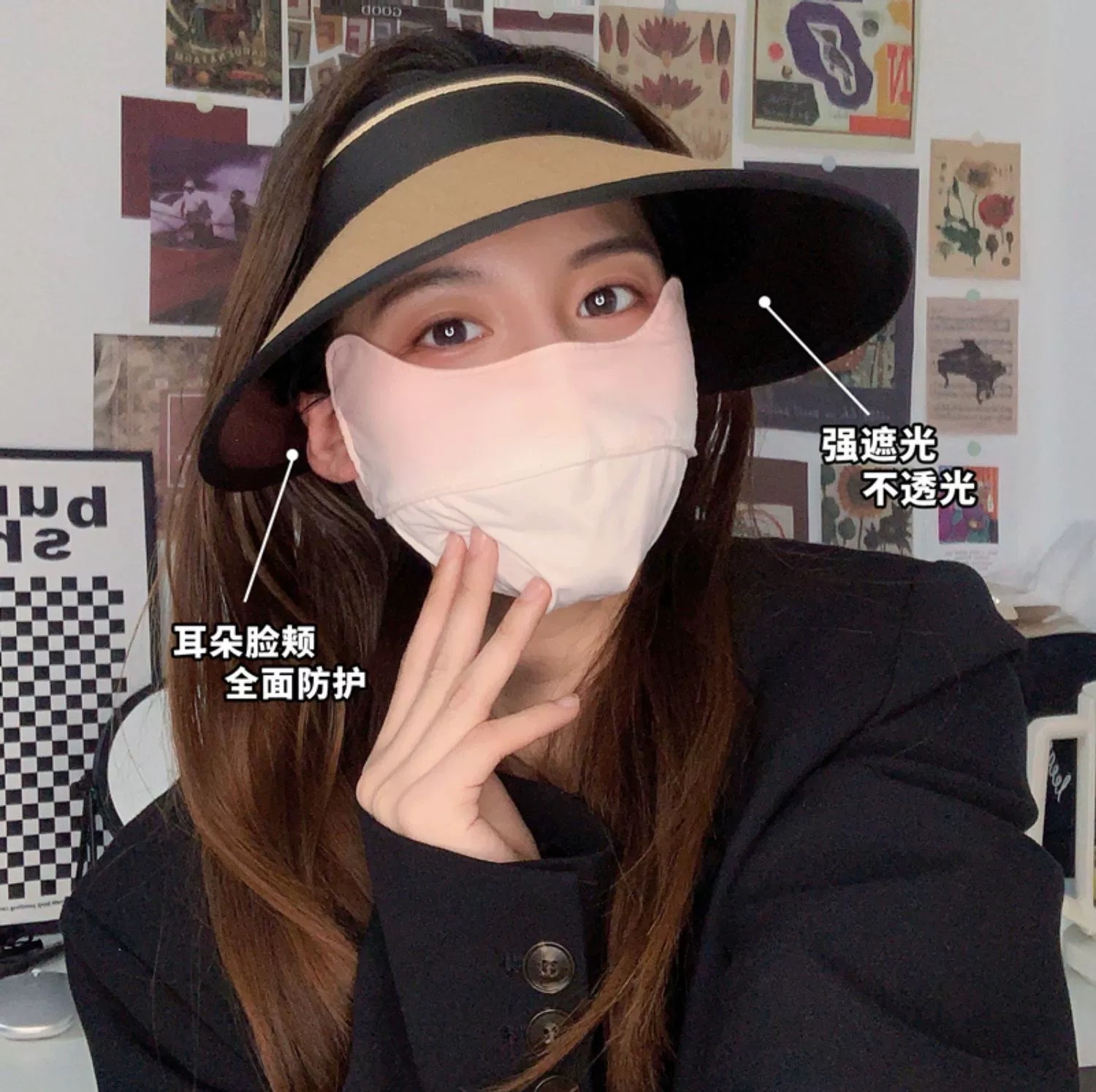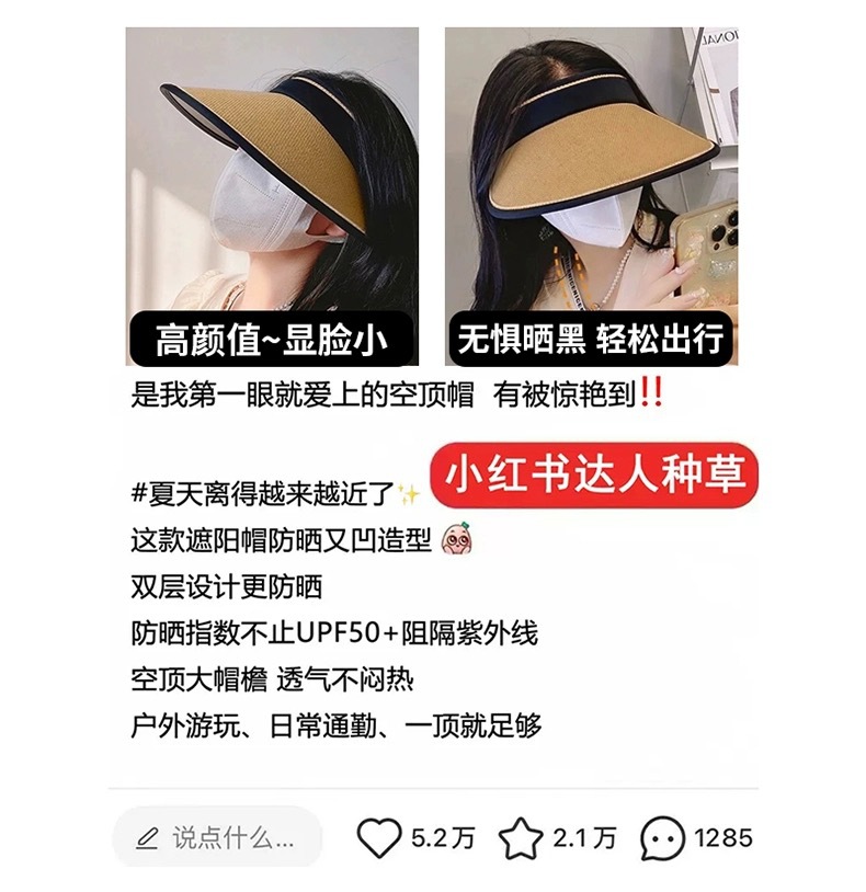 UPF50+防晒帽空顶帽女夏季骑行防紫外线遮阳帽百搭大帽檐太阳帽子