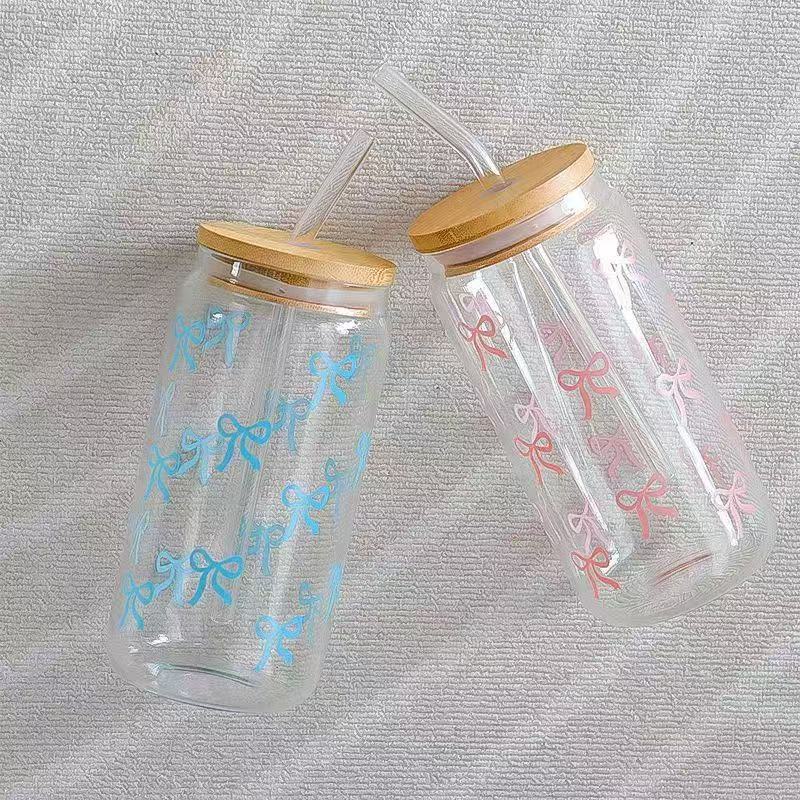Amazonクロスボーダーガールスイートリボンガラスコーラカップ高価値コーヒーミルクコールドドリンクカップ円筒カップ