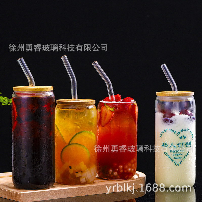 クロスボーダー爆金16オンスコーラカップグラスジュースカップストローカップミルクカップ木蓋高ホウ素シリコンセット