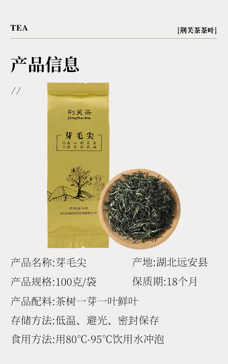 メーカー2023新茶毛尖茶特級高山緑茶春茶葉湖北原産100g袋入り荊芙茶