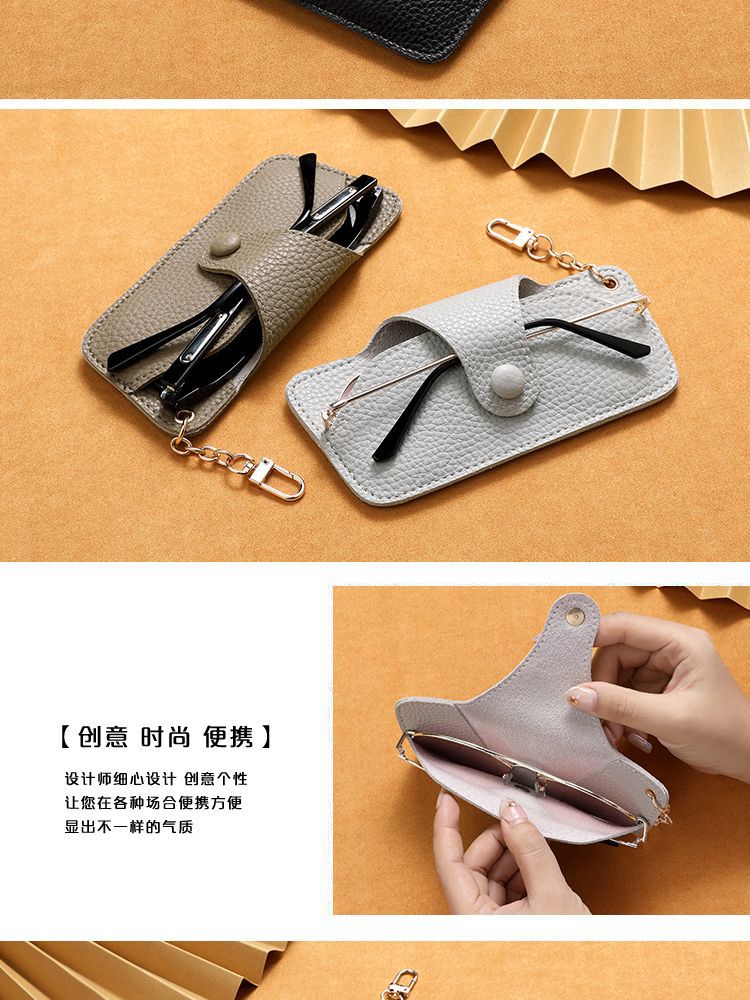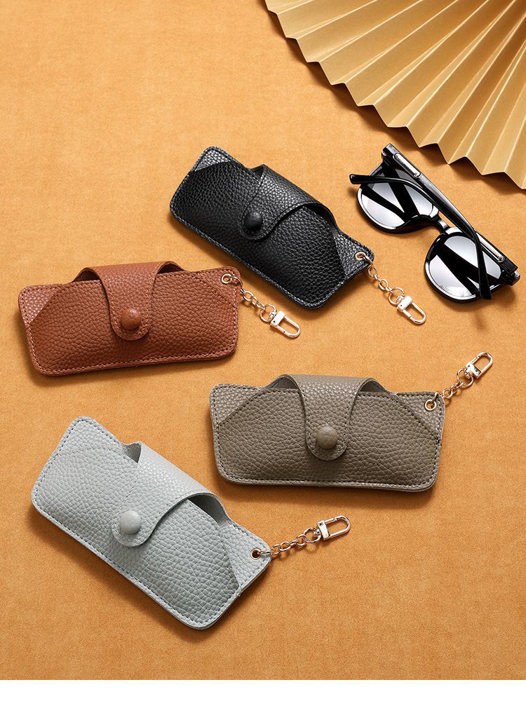 实力工厂定制pu皮革便携挂扣式眼镜套防刮耐磨多色可选钥匙扣设计