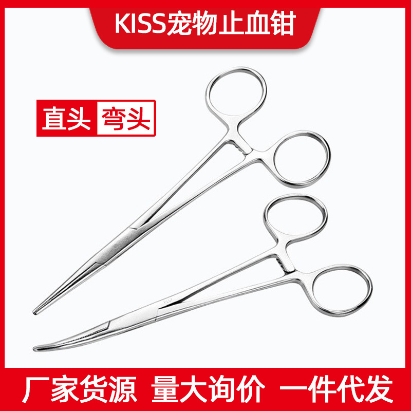 KISS宠物止血钳不锈钢拔耳毛钳手术钳弯头直头宠物专用狗拔毛镊子