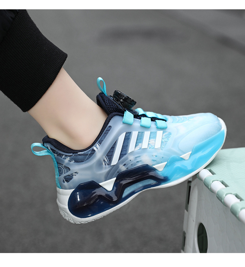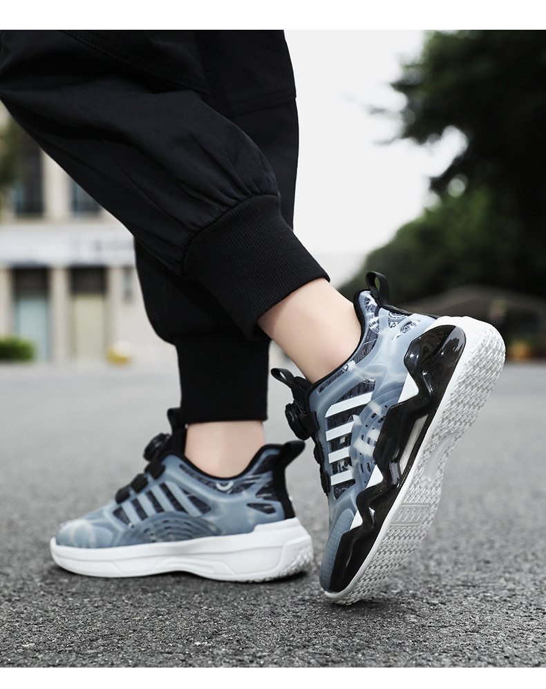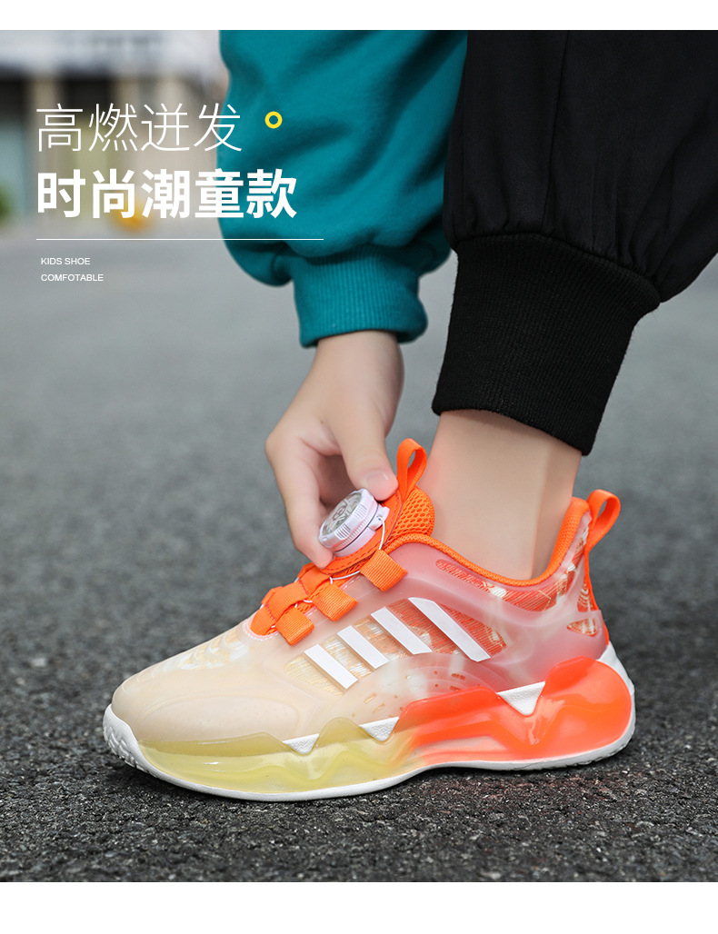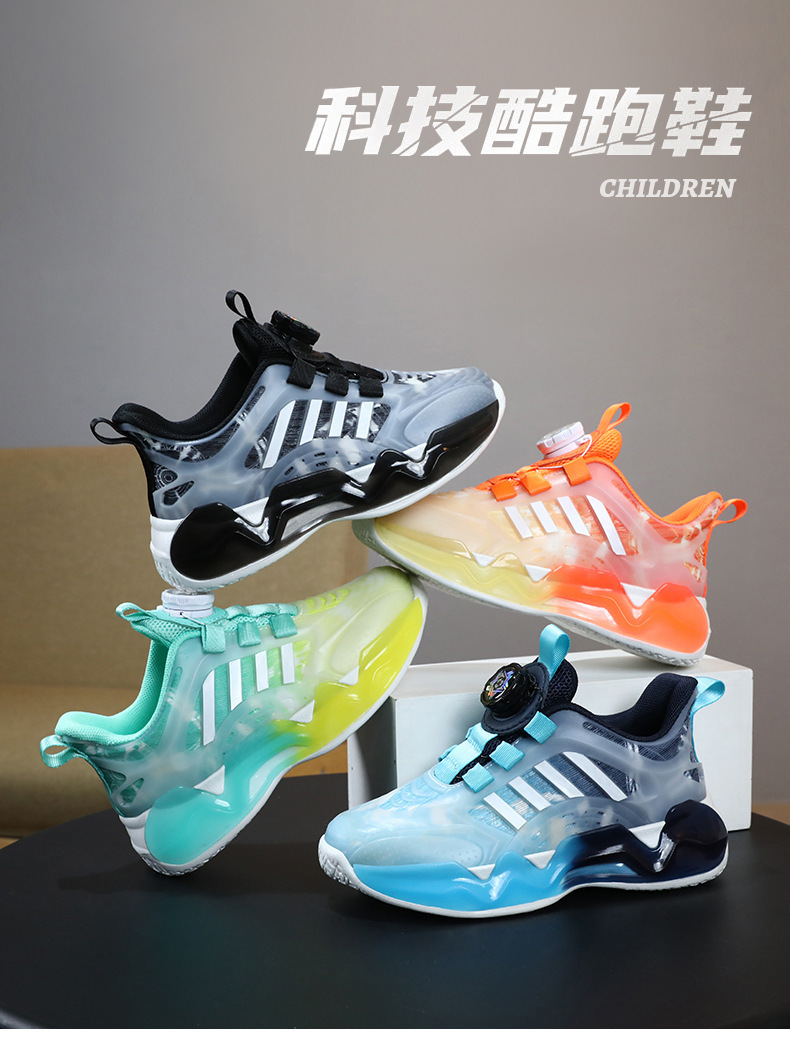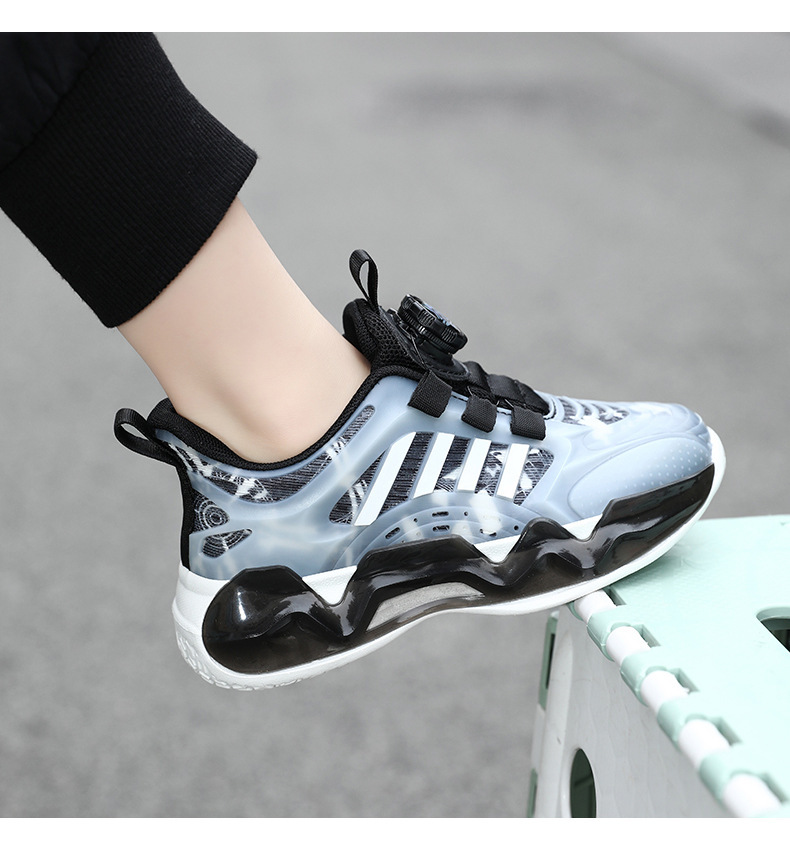 子供のバスケットボールの靴の中で大きい子供の実戦のバスケットボールの靴の2024秋の回転のボタンの男の子の運動靴の実体の卸売り