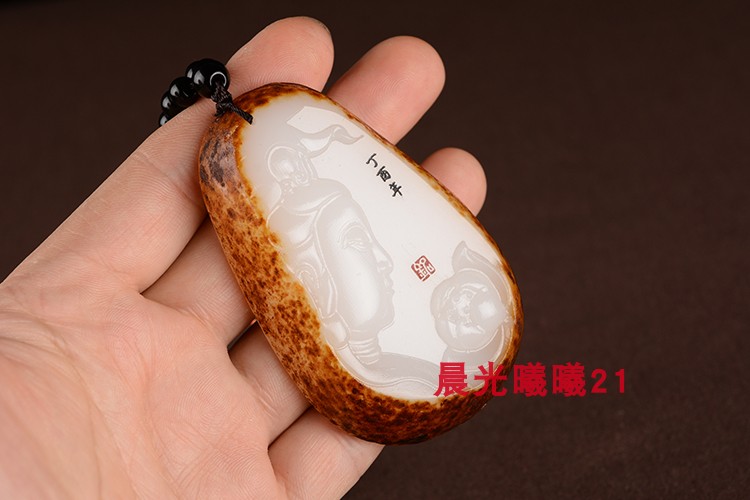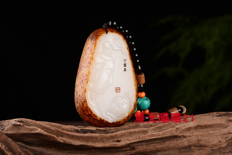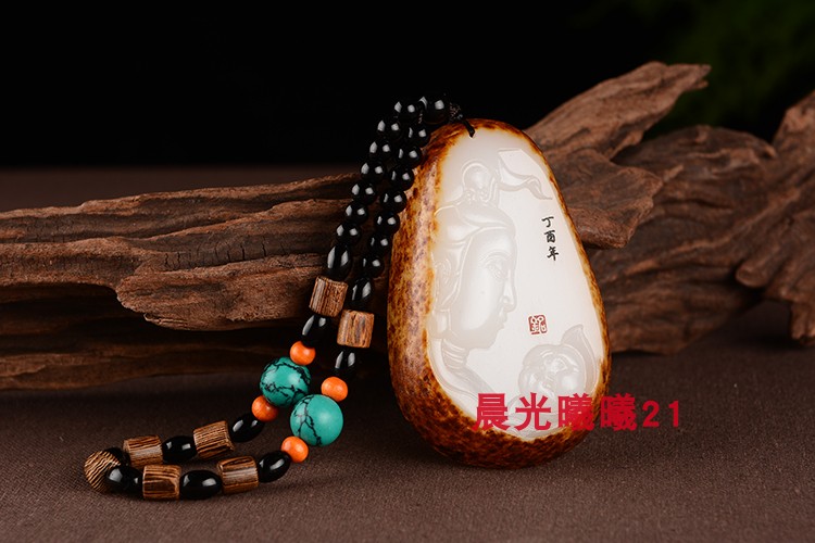 アフガニスタン翡翠蓮華観音手飾り アフガニスタン翡翠皮付き防種料蓮華観音手飾り翡翠ペンダント