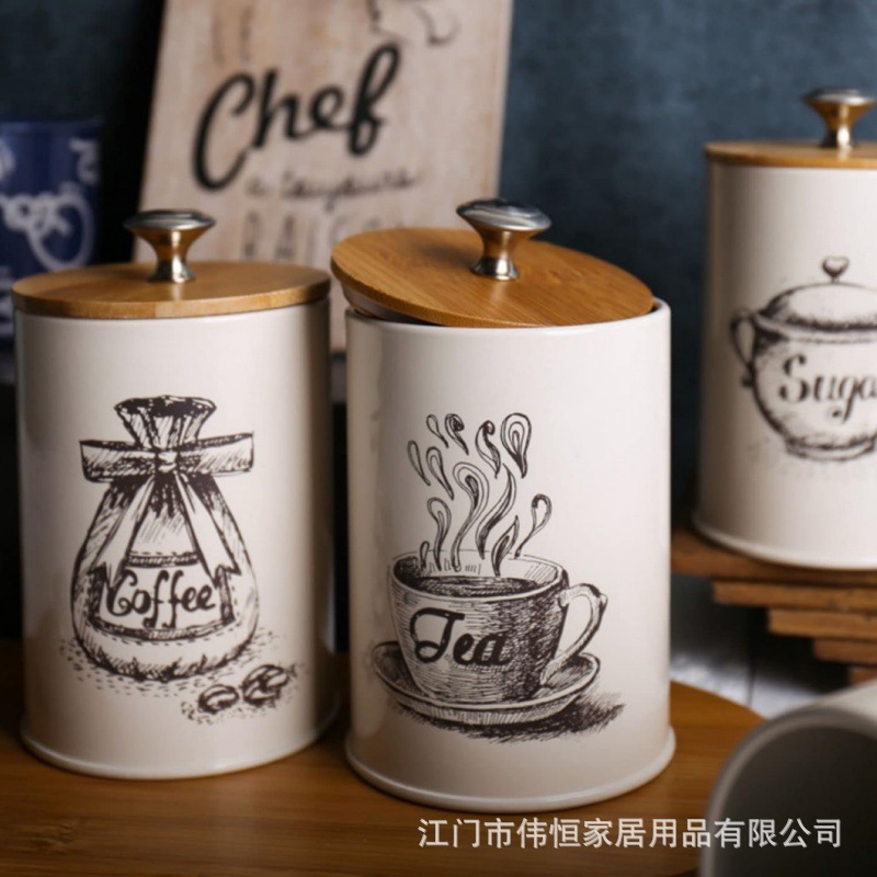 现代简约厨房客厅餐厅适用咖啡糖茶竹盖密封储存罐储物罐带盖