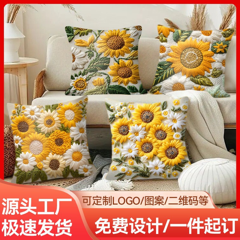 temu亚马逊跨境向日葵复古季抱枕套清新款四件套抱枕