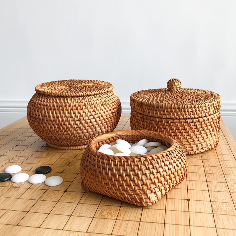 【熱売】ベトナム藤編収納ケース囲碁缶五子棋籠アクセサリーケース