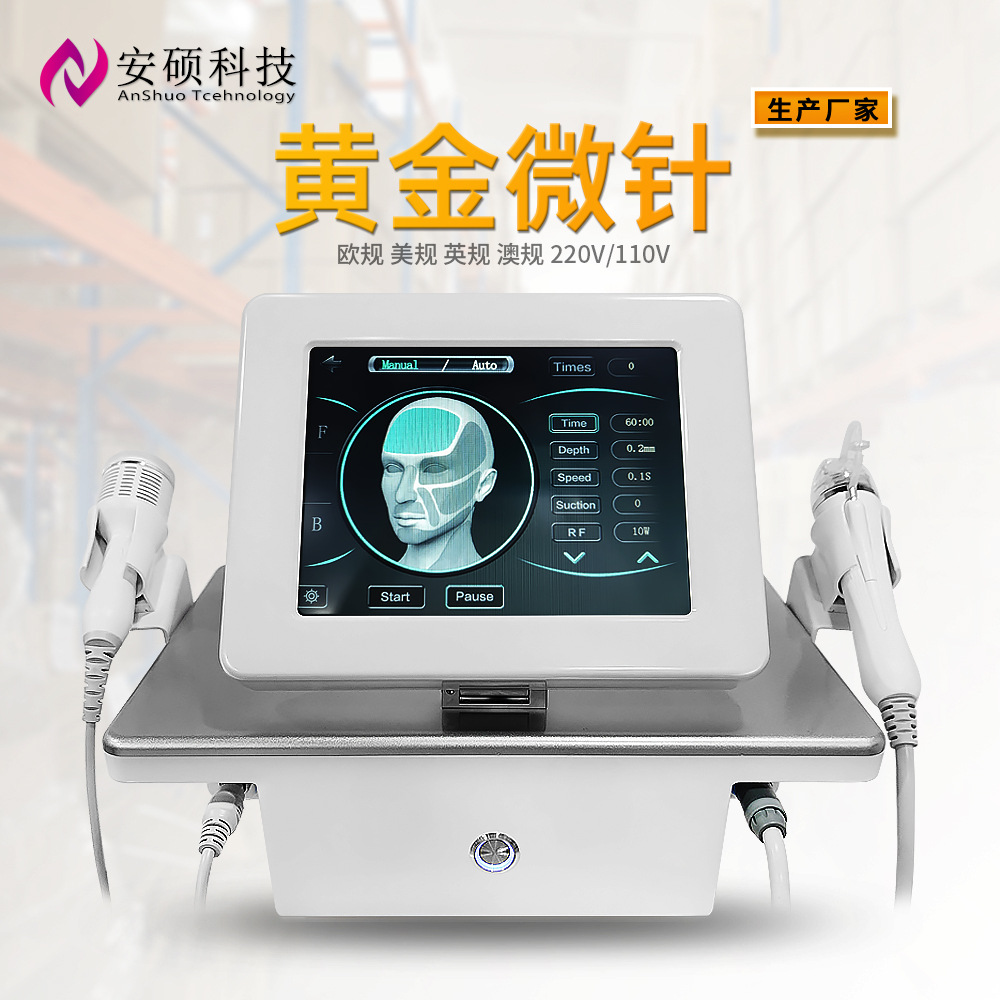 クロスボーダーデスクトップゴールド高周波微結晶ダブルハンドルアイスハンマー修復ニキビピット毛穴縮小ゴールドマイクロニードル美容器具