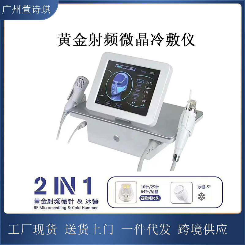 跨境台式黄金射频微晶双手柄带冰锤修复收毛孔冰敷护肤黄金美容仪