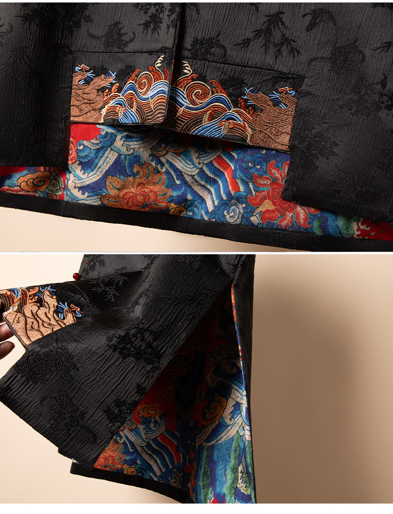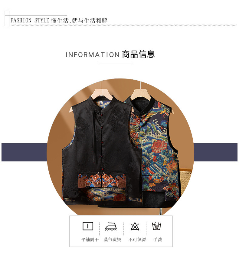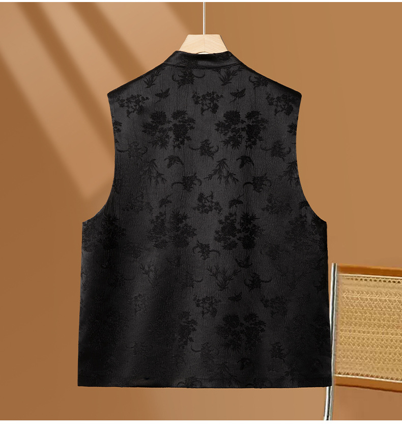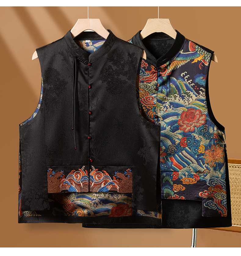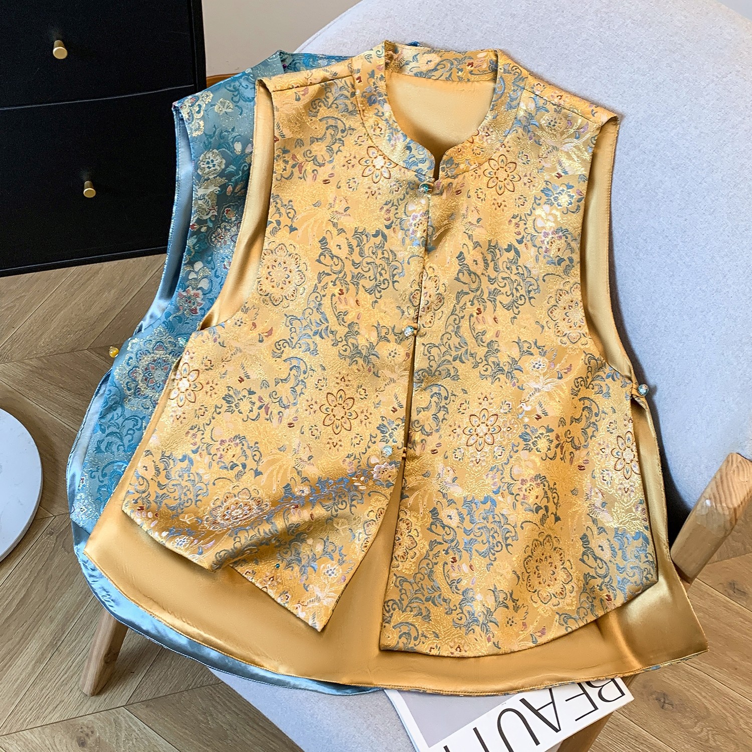 新商品2024ジャカード民族馬甲中国式レトロ盤バックル国風ベスト立襟重工刺繍肩