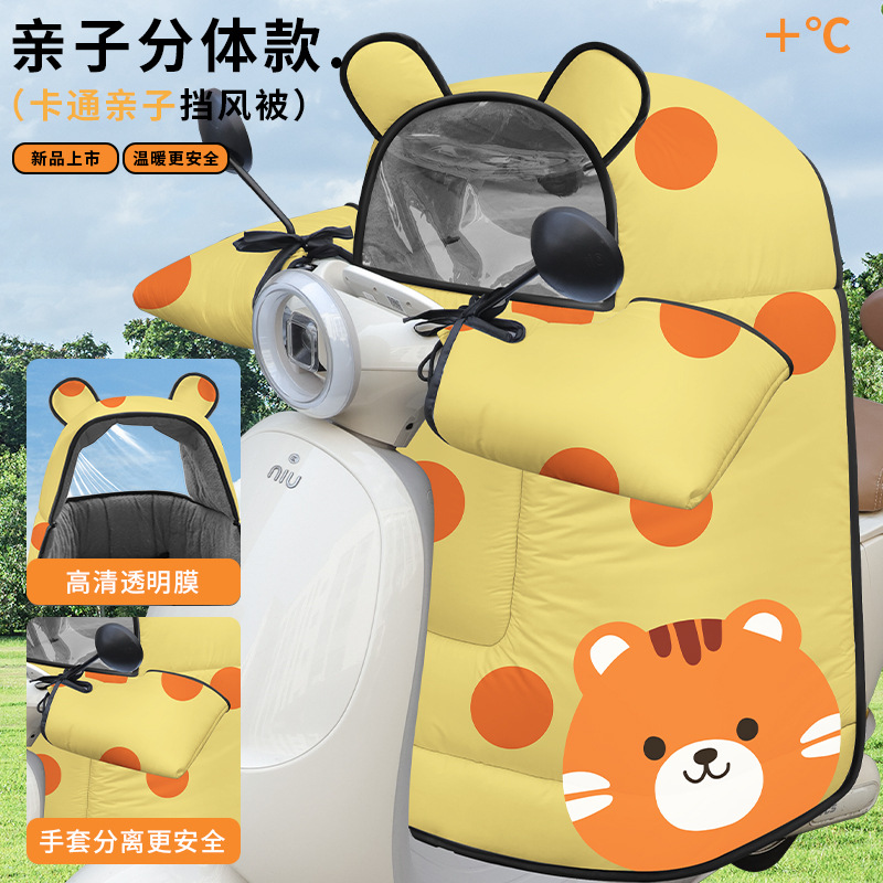 冬季亲子款电动车挡风被加绒加厚电瓶摩托车防风罩儿童分体后座款