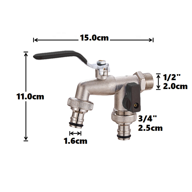 クロスボーダー専用園芸ダブル出水亜鉛合金ノズル一進二出ダブル乳首、ベルト蛇口【黒】