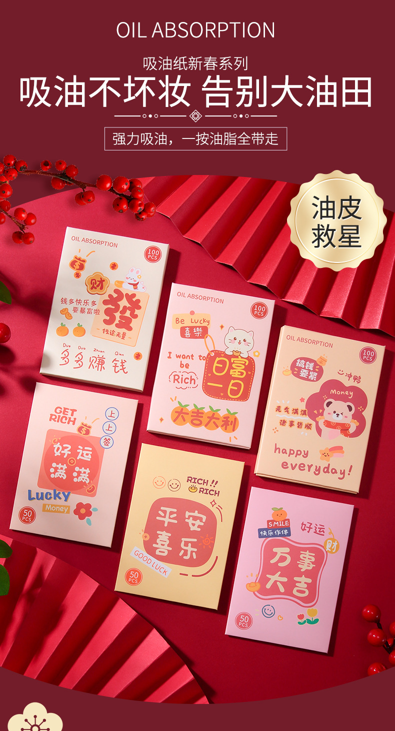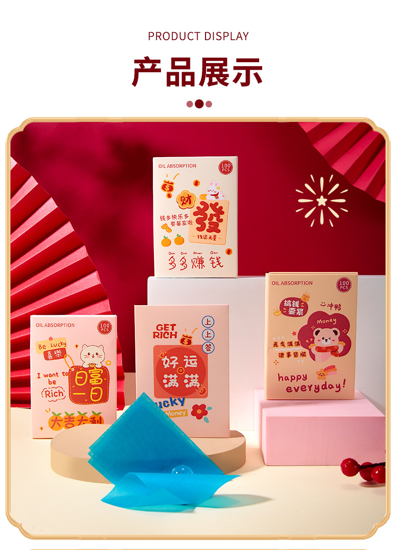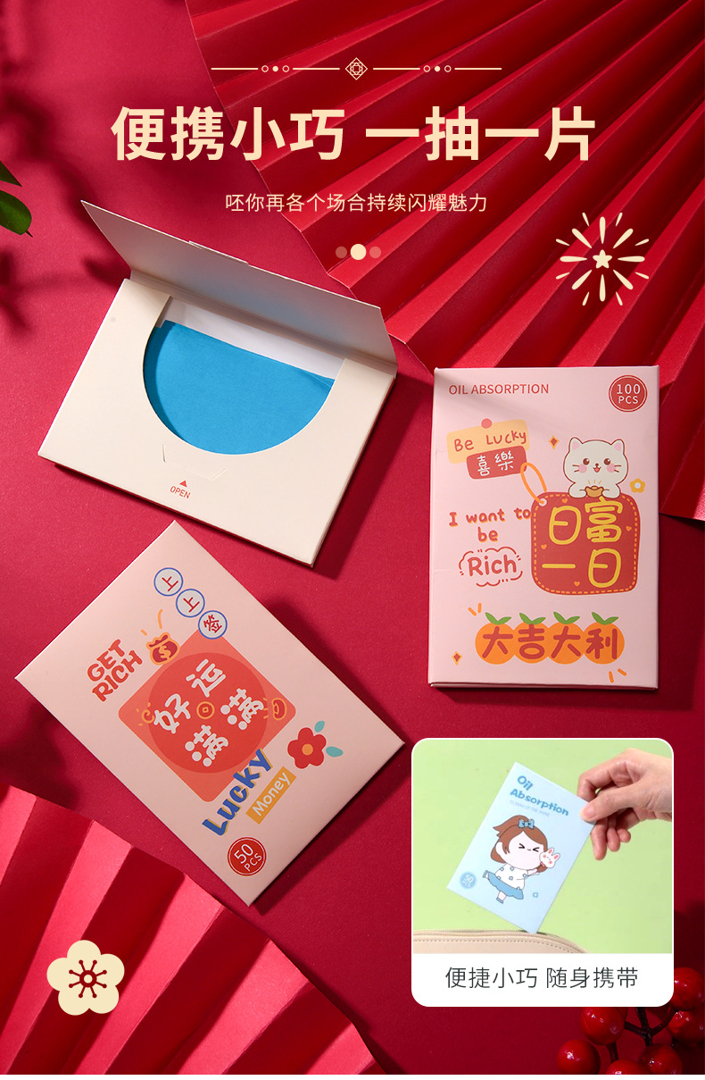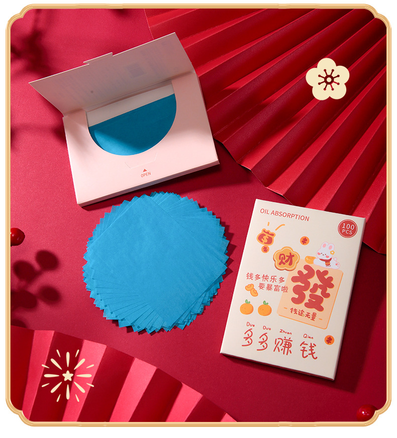 Lmltop新年金100枚の油取り紙の顔はさっぱりしています。