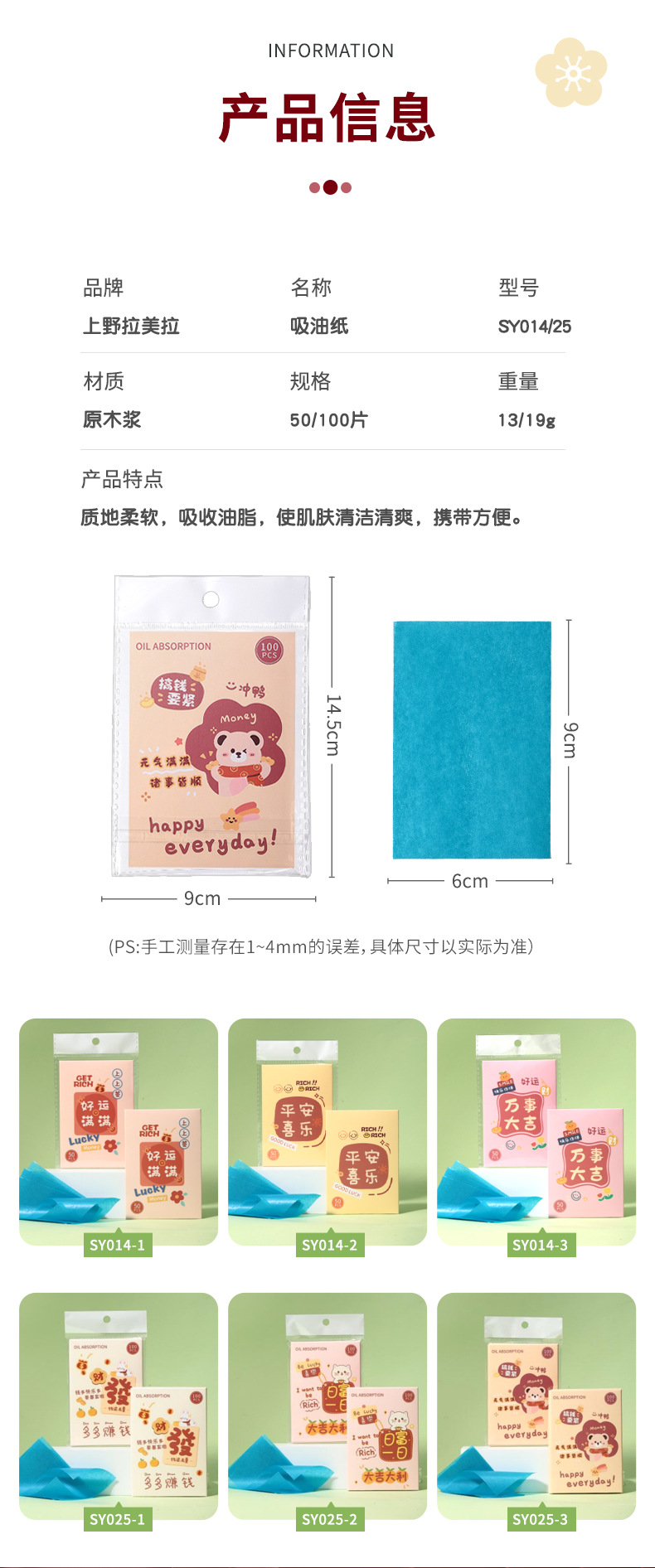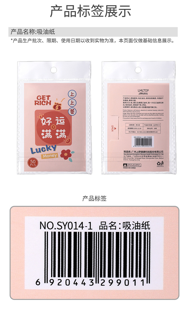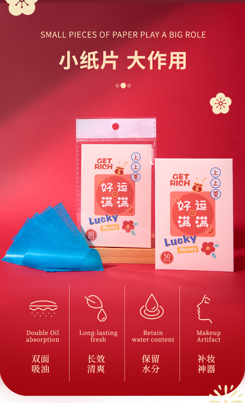 Lmltop新年金100枚の油取り紙の顔はさっぱりしています。