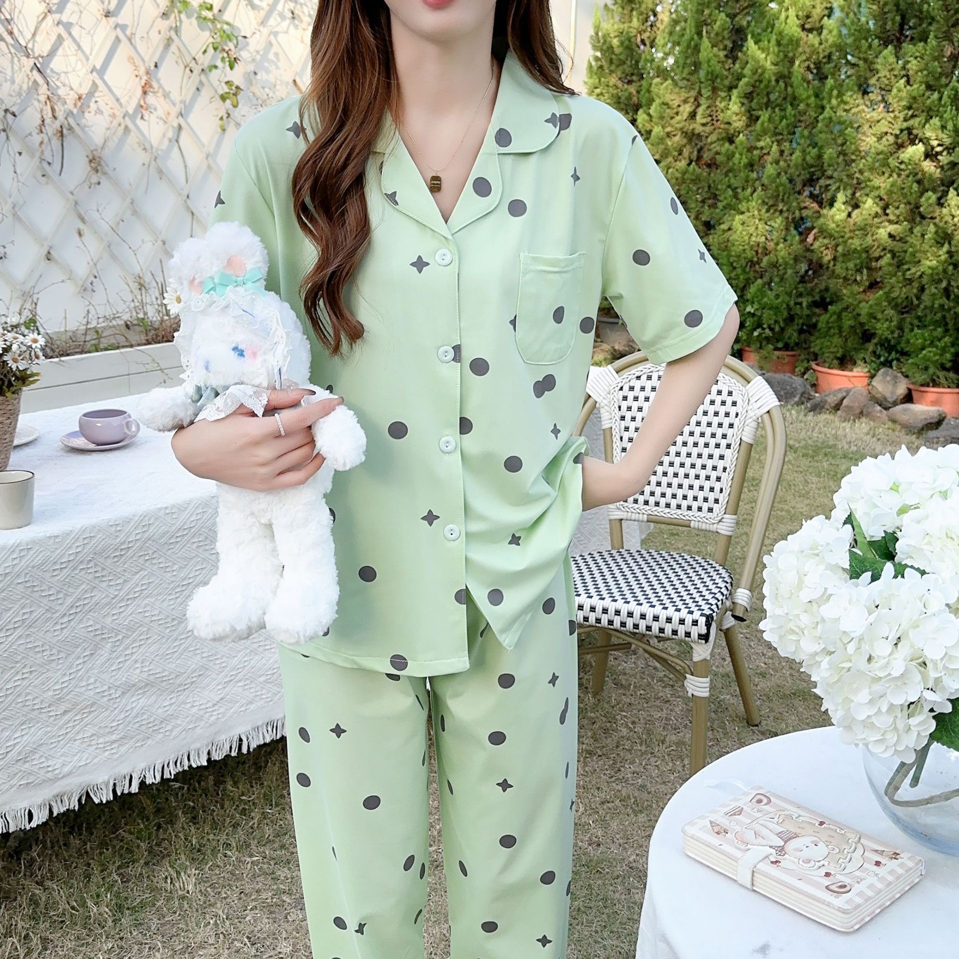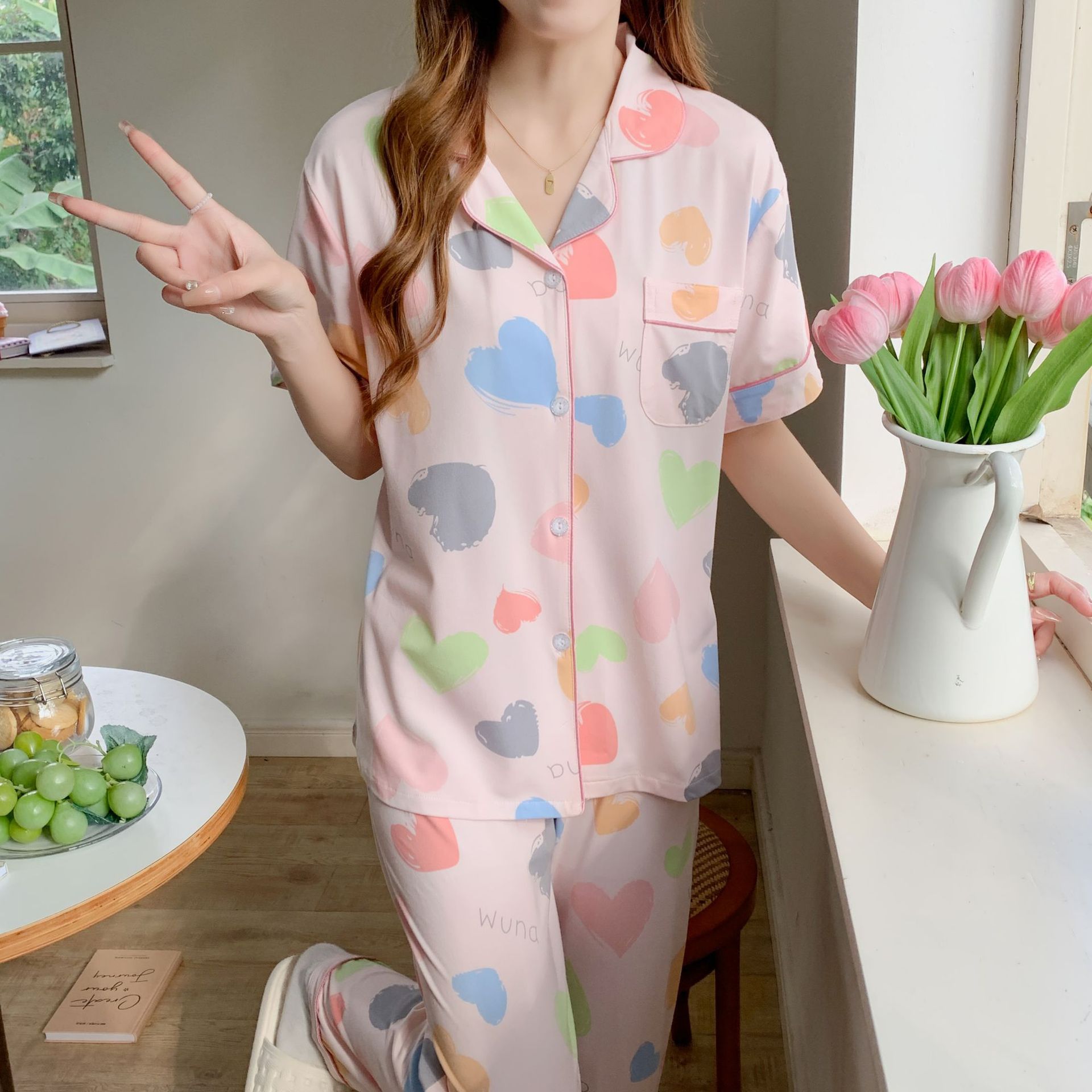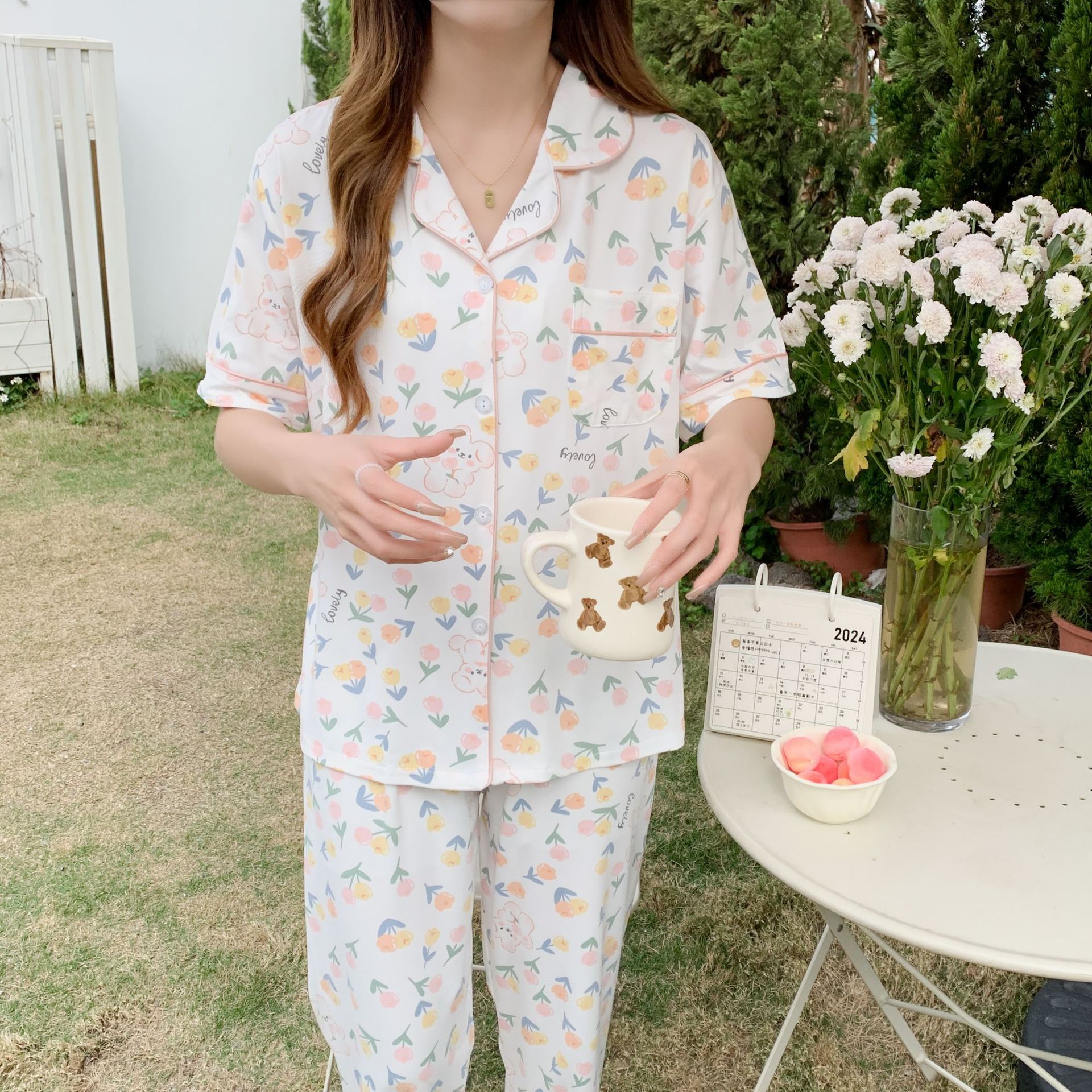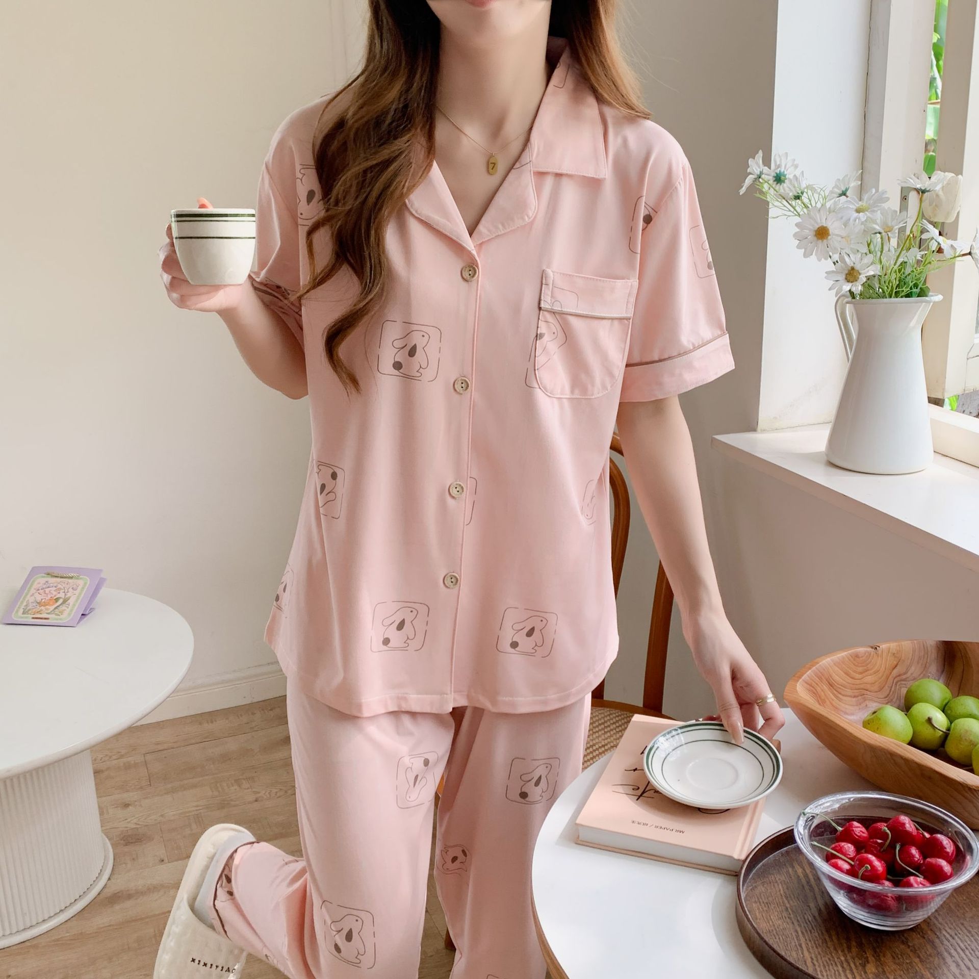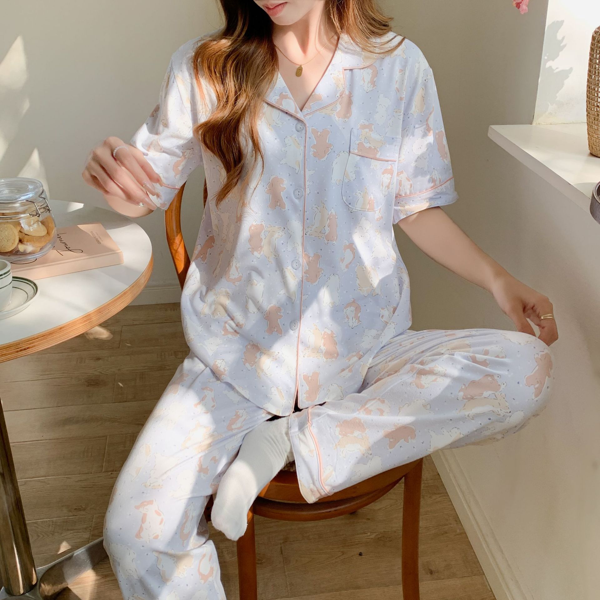 韓睡眠依2024新製品-複数のオプション2セットins風小アンドロメダ甘いパジャマ家服国境を越えた