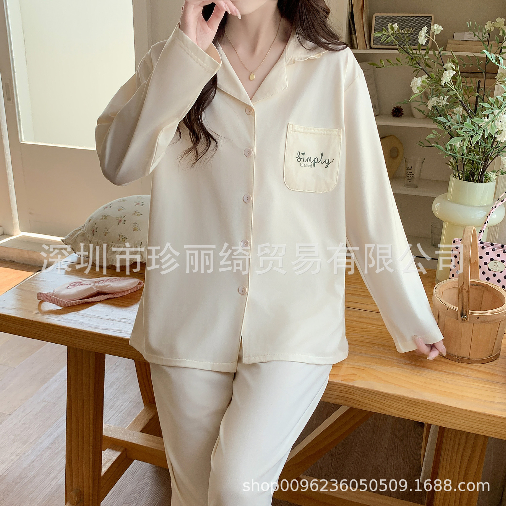 クロスボーダー風 インス風 ラフで可愛い パジャマ レディース 長袖 長ズボン ホームウェア 外出着としても着用可能