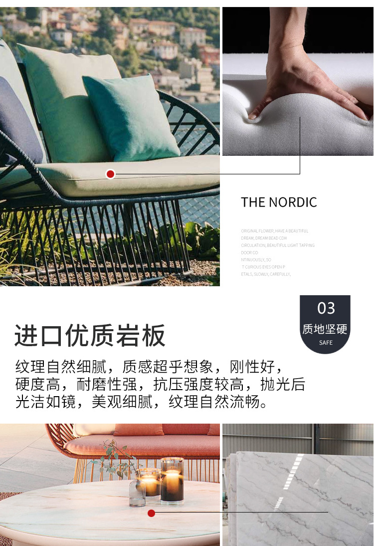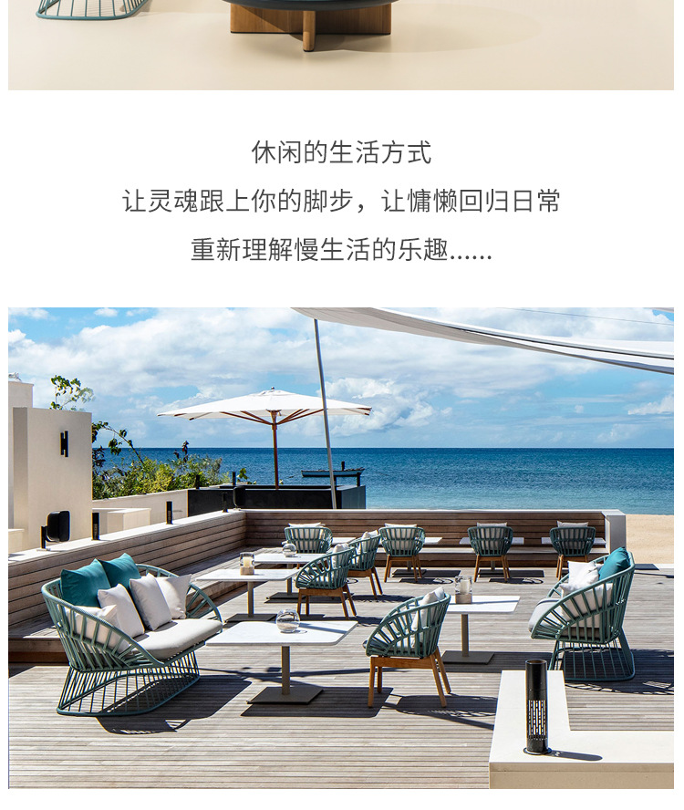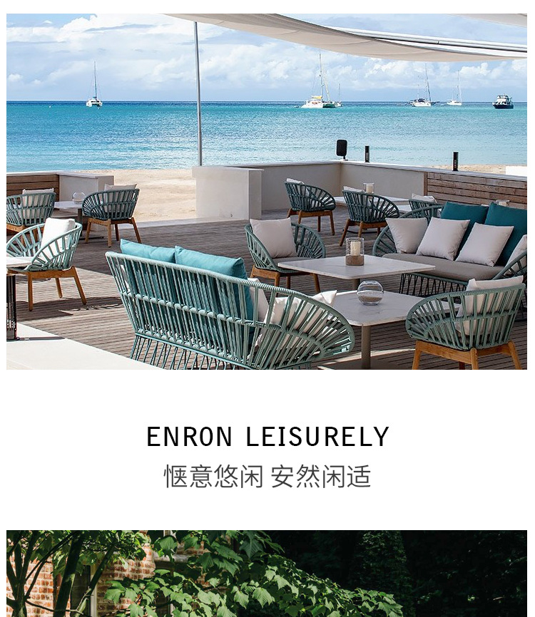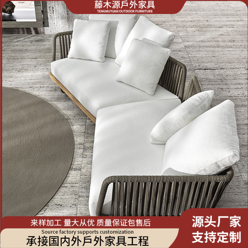 北欧屋外無垢材ソファヴィラ中庭ガーデン籐織ソファ組み合わせハイエンドバルコニーチークソファ家具