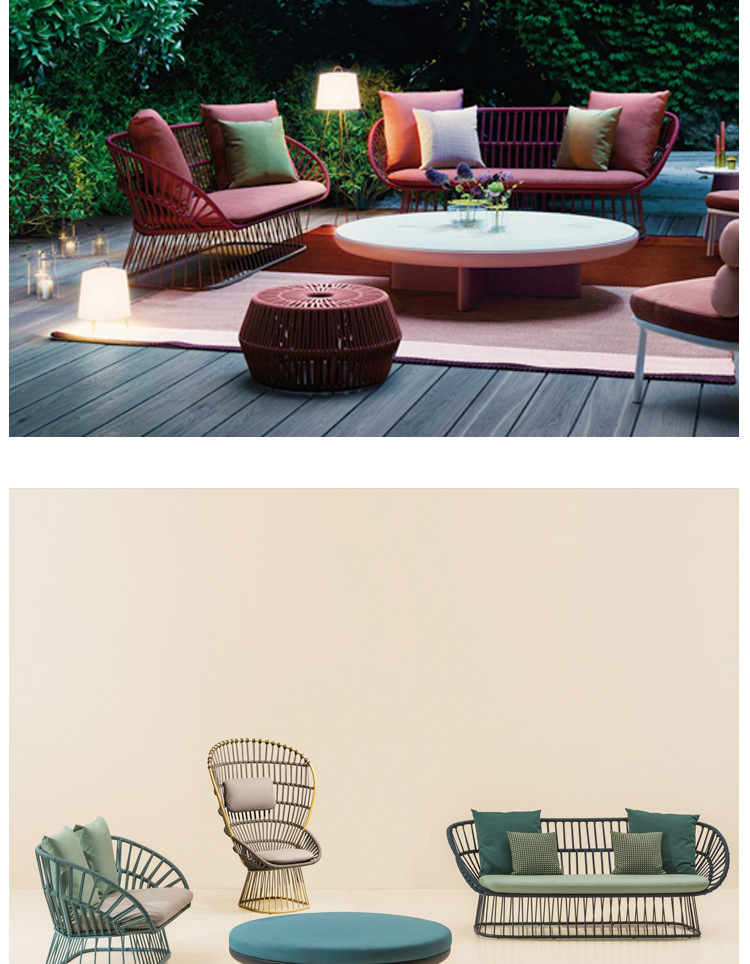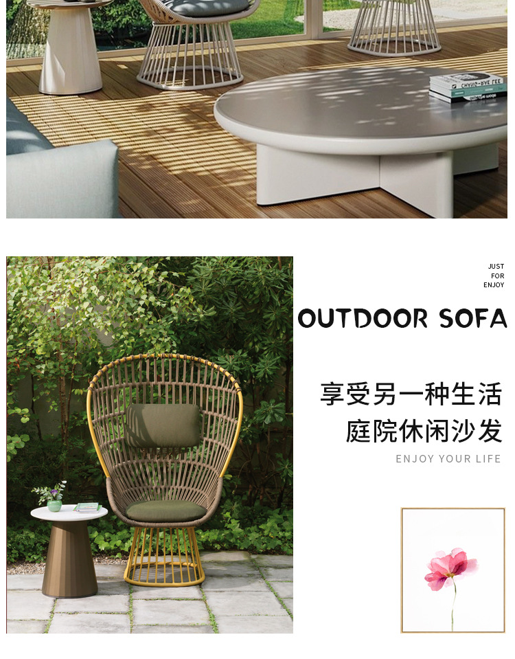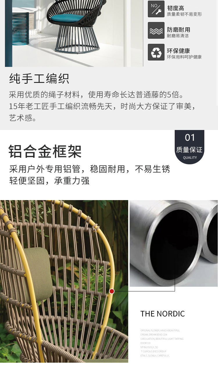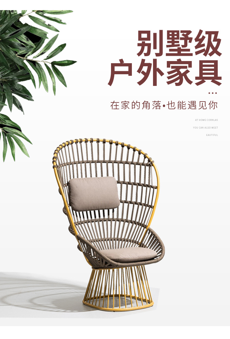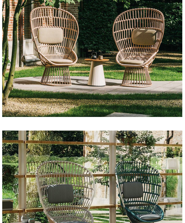 北欧屋外ソファ別荘庭バルコニー屋外籐編み家具セットホテル円形籐ソファ籐椅子