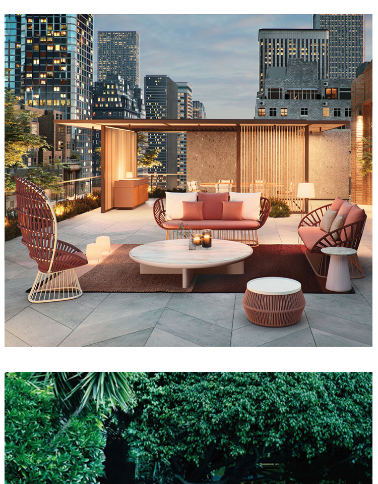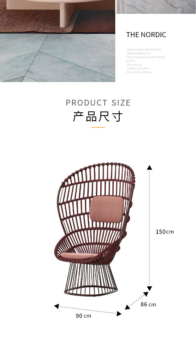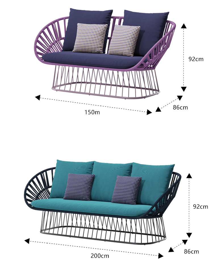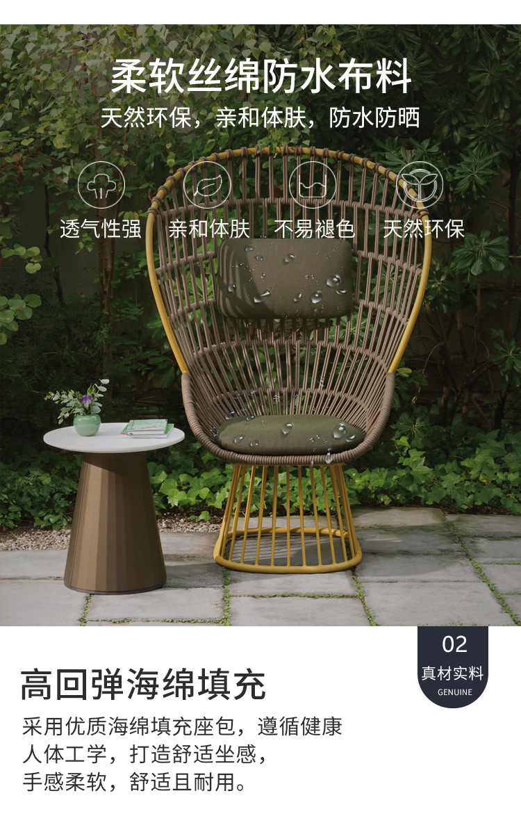 北欧屋外ソファ別荘庭バルコニー屋外籐編み家具セットホテル円形籐ソファ籐椅子