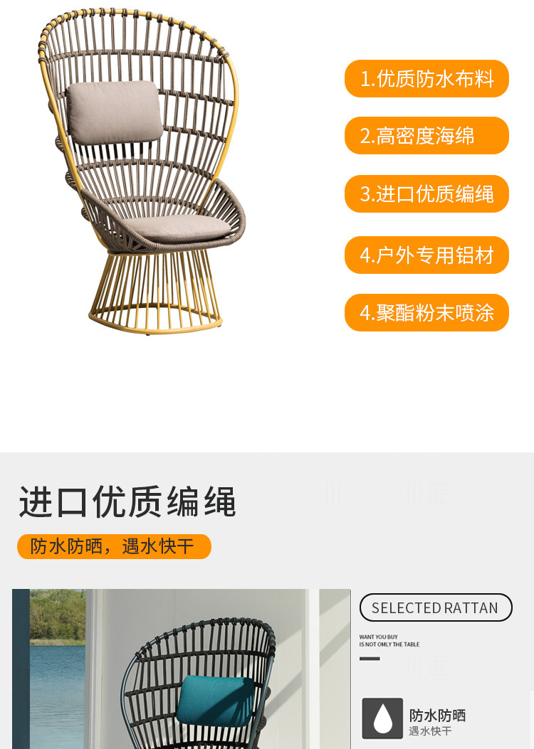 アウトドアチェア庭露天屋外ベランダ籐椅子三点セットカフェホテルレジャー籐编みシングルチェア