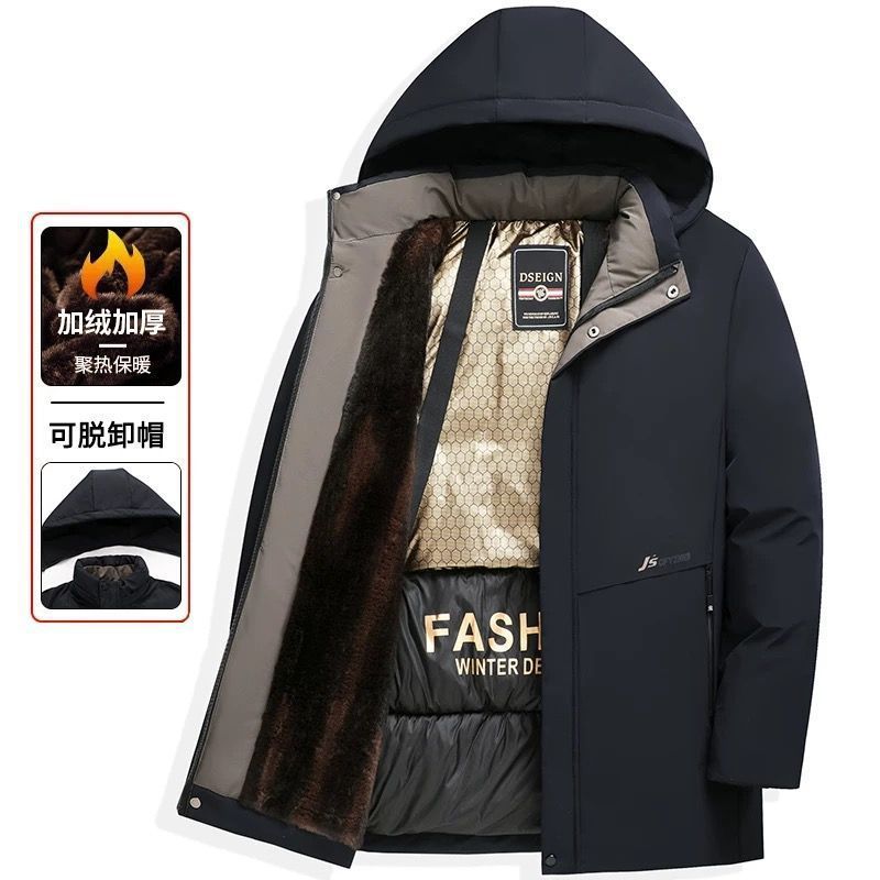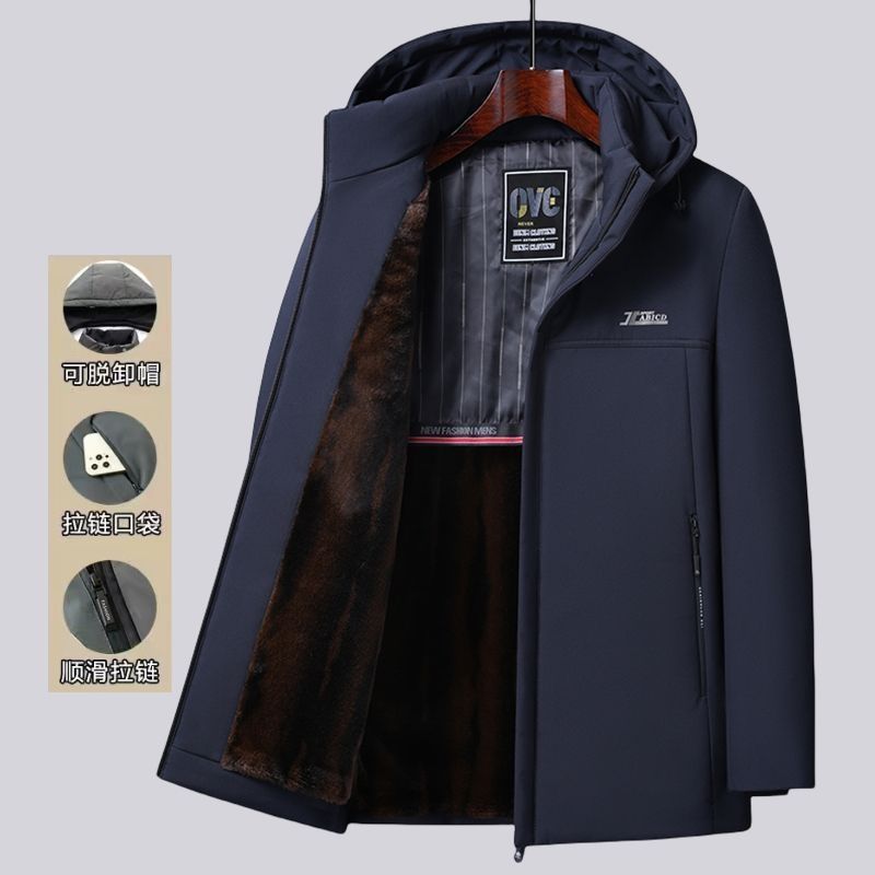 中高年ビジネス男性のお父さん2024冬服ベルベット保温取り外し可能な帽子コートグラフェンコットンパーカー服