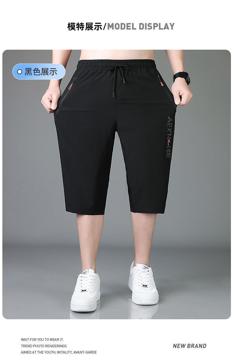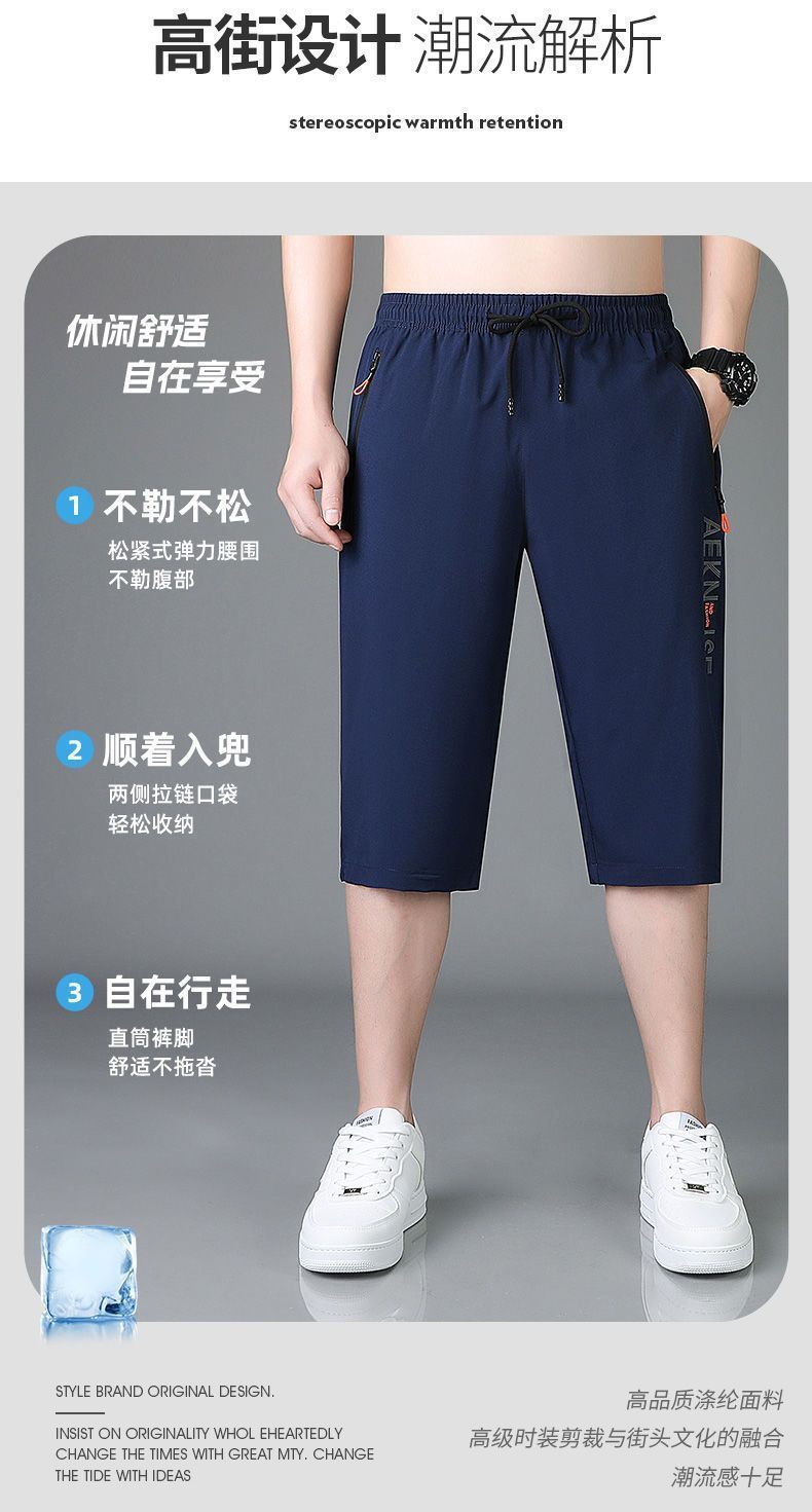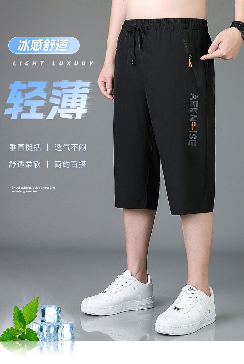 夏用アイスシルクスポーツ速乾パンツメンズショートパンツゆったり5点式ビーチカジュアルミッドパンツアイスフィール