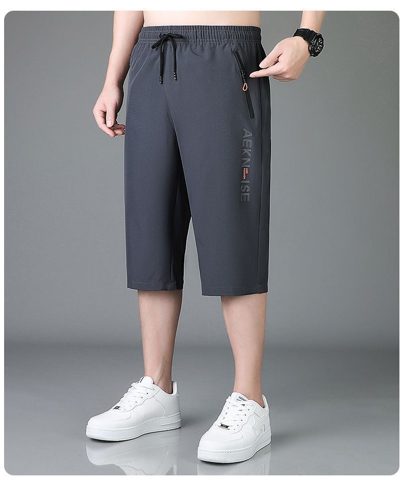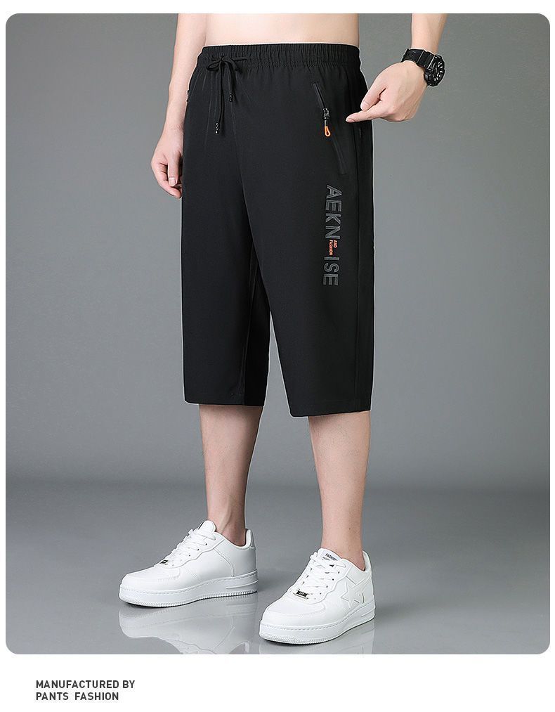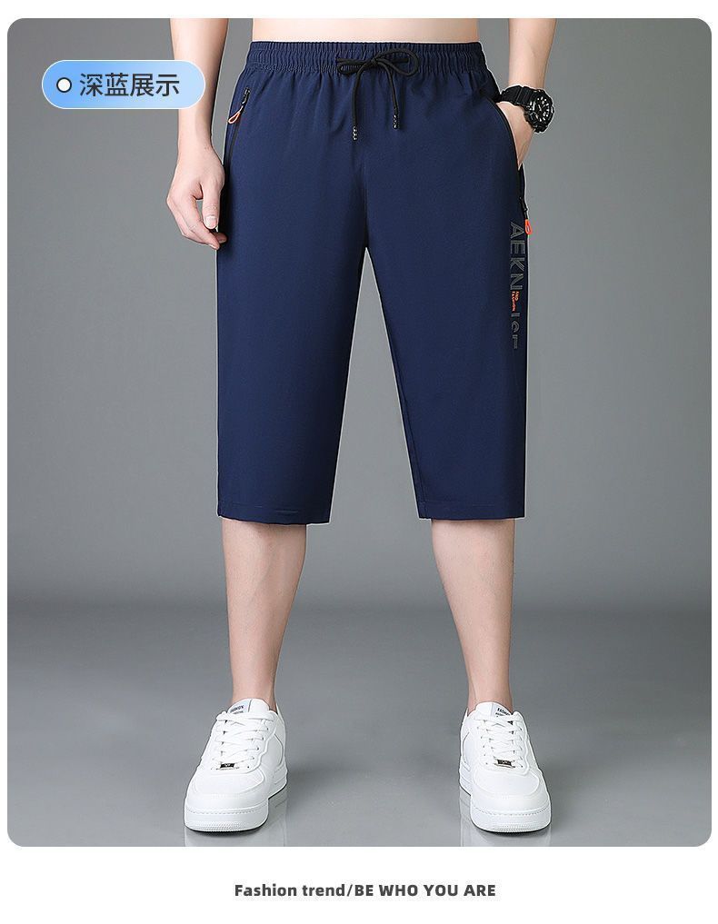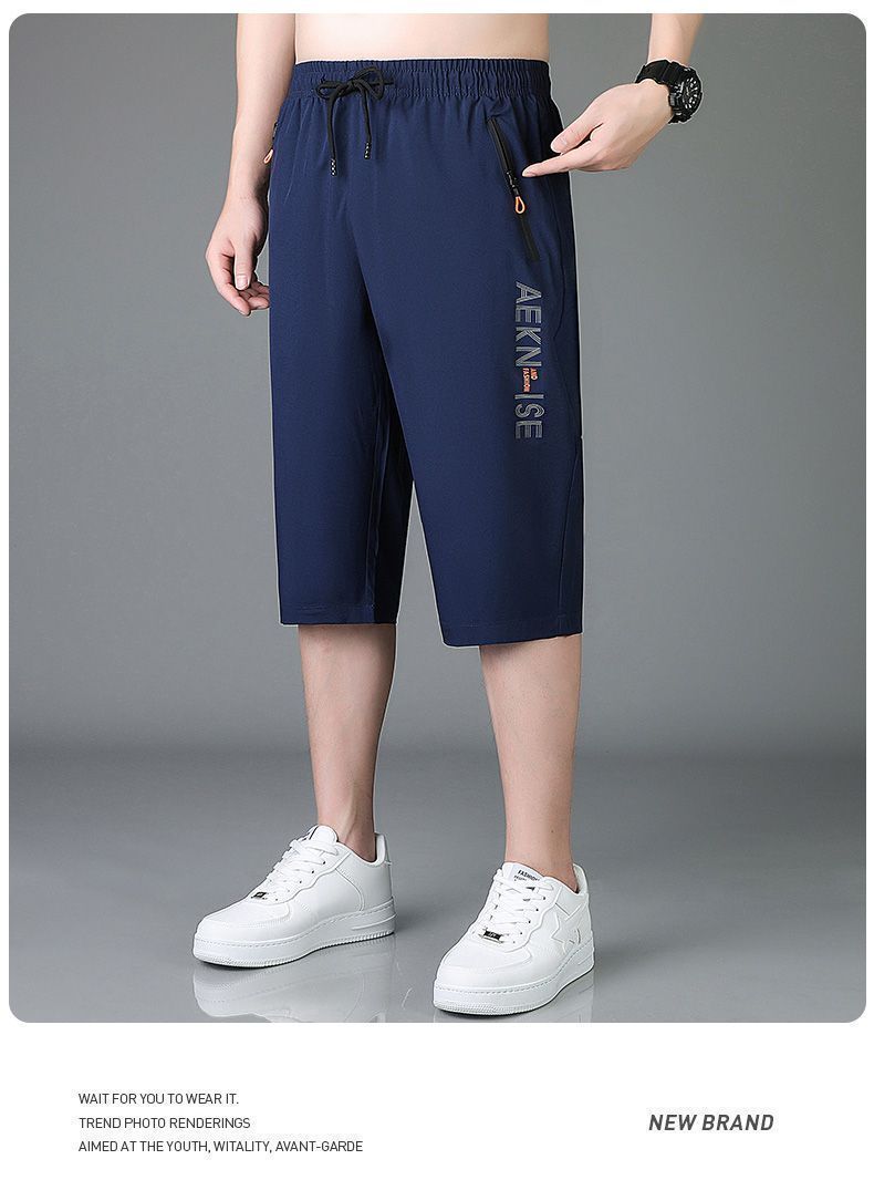 夏用アイスシルクスポーツ速乾パンツメンズショートパンツゆったり5点式ビーチカジュアルミッドパンツアイスフィール