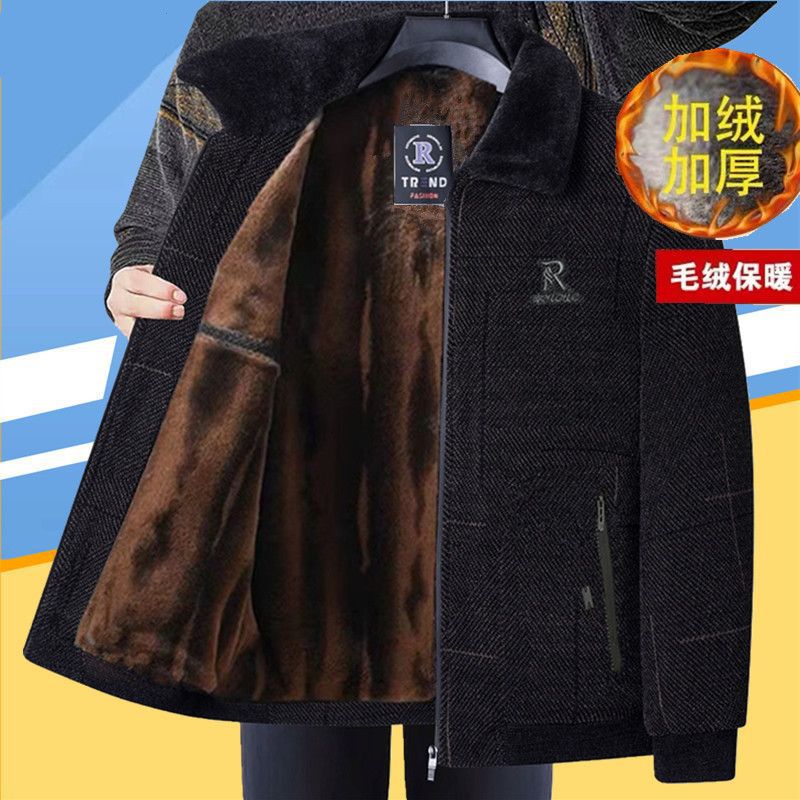 中年男性用コート、お父さん用コート、秋冬用、おじいちゃん用綿入れジャケット、ウール素材、ゆったりとしたショート丈ジャケット、防寒、カジュアル、多用途