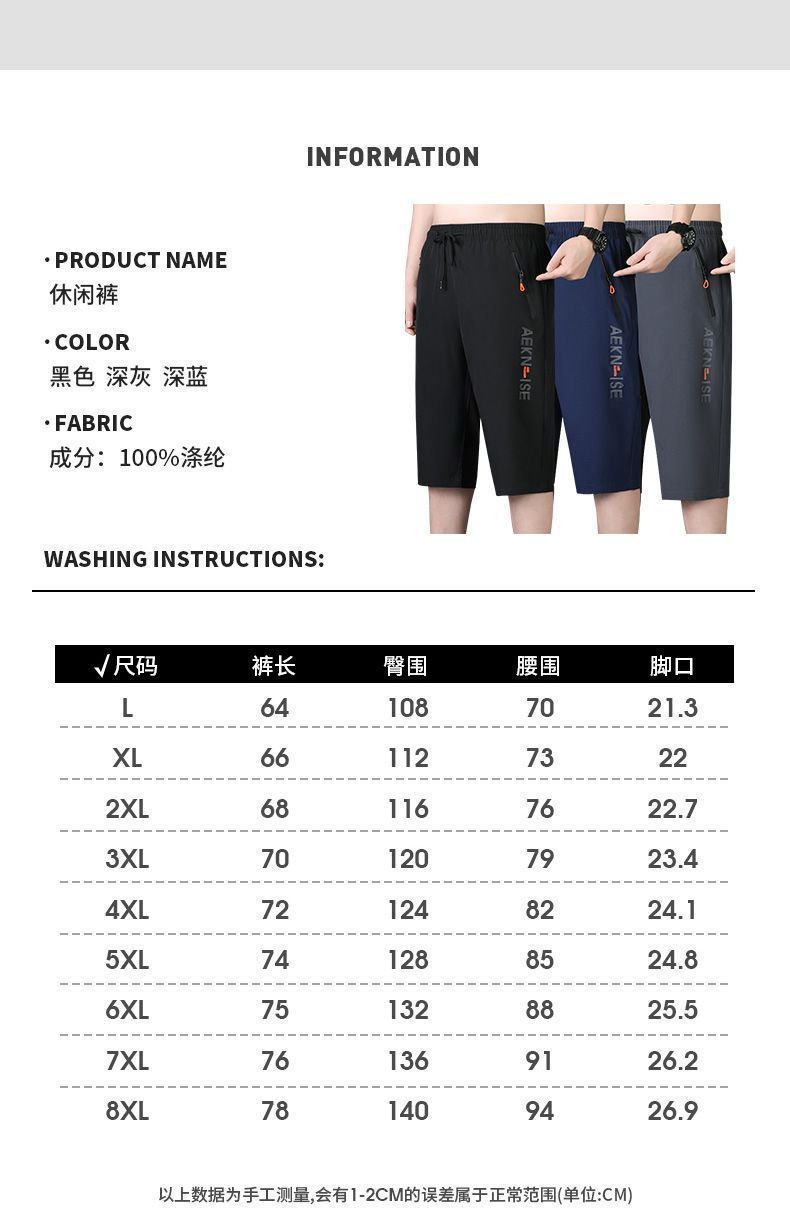 夏用アイスシルクカジュアル七分丈パンツ メンズ ゆったりプリント 大きめサイズ 速乾性 七分丈パンツ 外出着 カジュアル 多用途