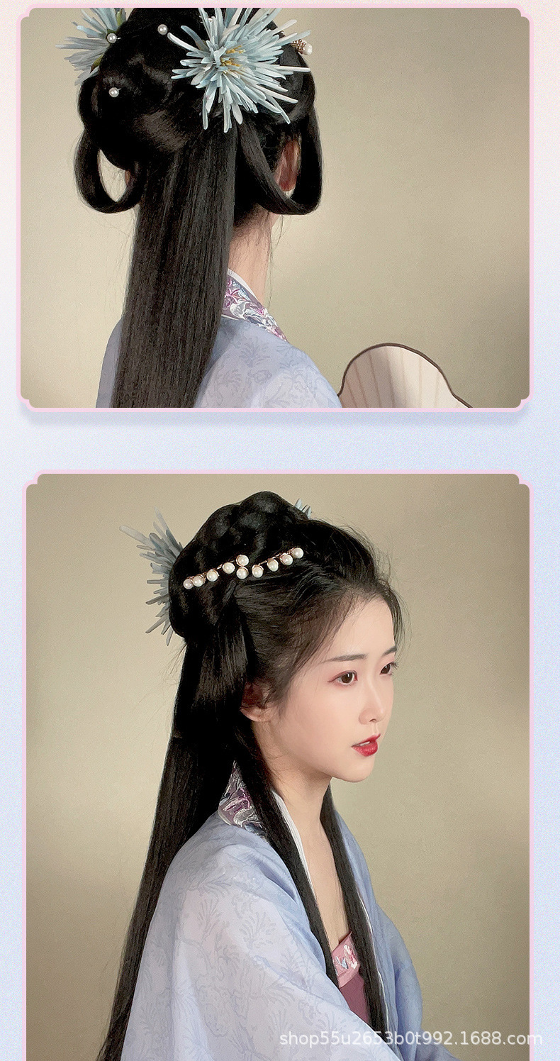 女の子の漢服ウィッグ、古代風の頭飾り、子供用ウィッグバッグ、古代衣装、毎日のおだんごヘアスタイル、ヘアパッド、ヘアアクセサリー