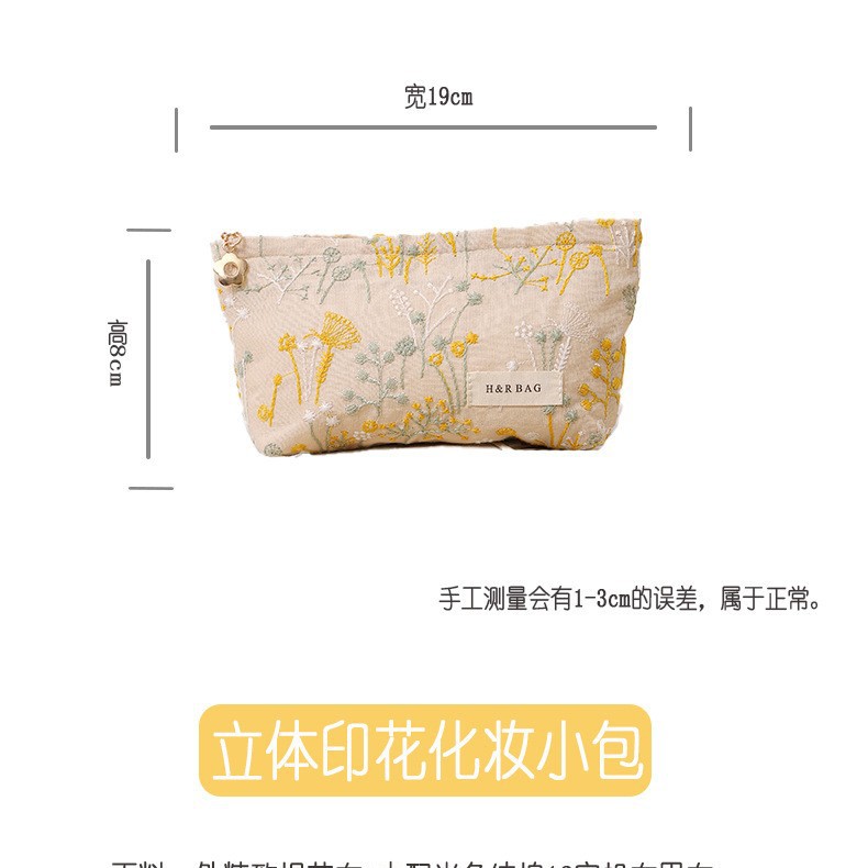 大容量コットン麻植物刺繍ポーチ手持ちポータブルキャンバス収納袋口紅スキンケア洗面バッグ