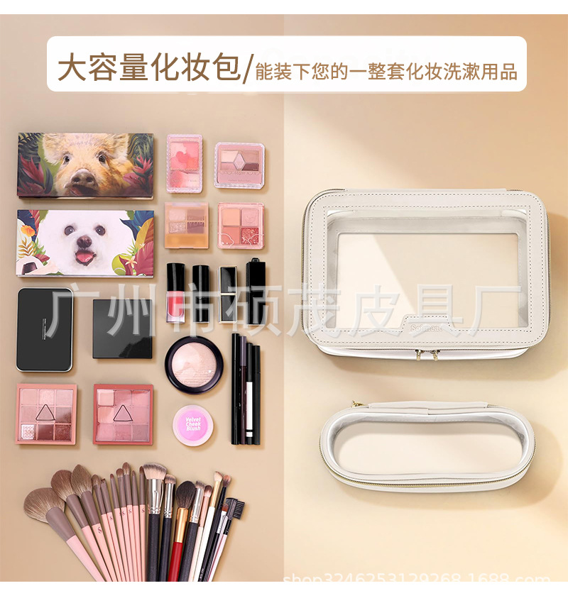 亚马逊热销透明化妆包带化妆刷袋皮革化妆盒洗漱包便携式化妆包