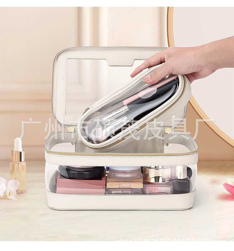 TPU可视化妆包双拉链大容量化妆品收纳包美容院客人礼品包