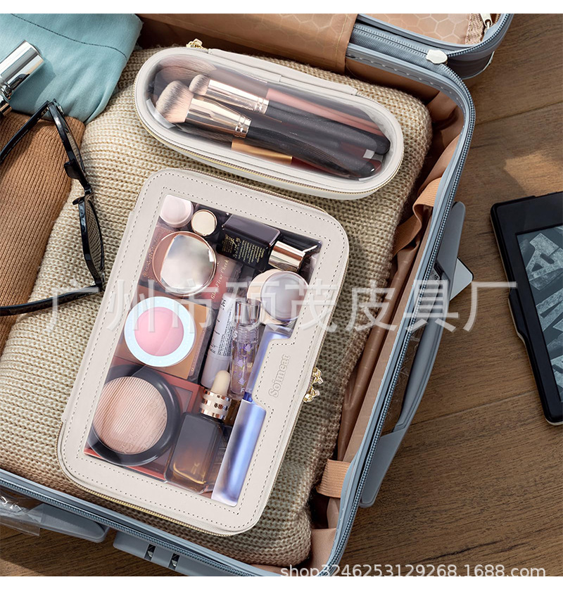 新款透明化妆包大容量旅行便携化妆品PU洗漱包高级感子母包收纳包