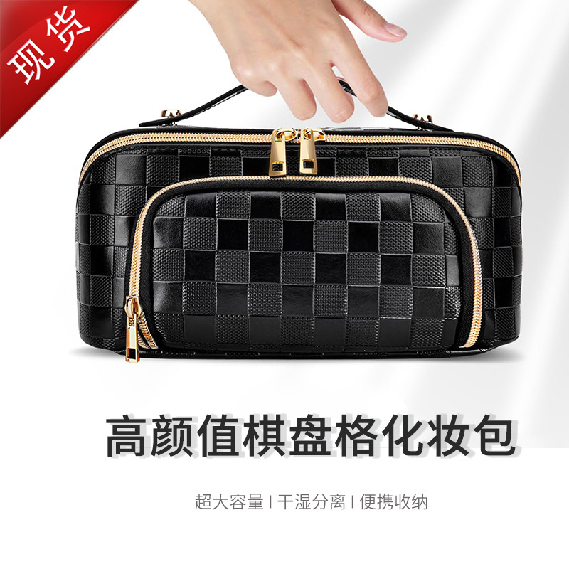 高颜値棋盤格枕化粧バッグ大容量二重化粧バッグ携帯式洗面バッグひし形化粧バッグ
