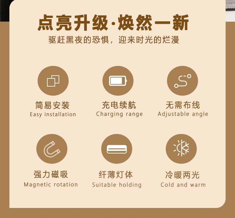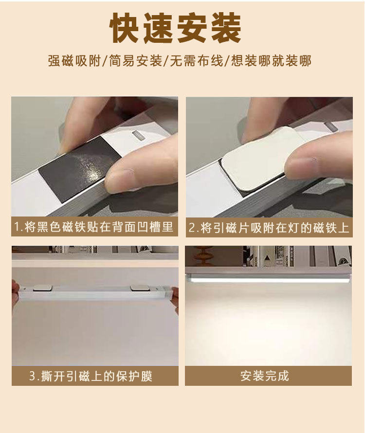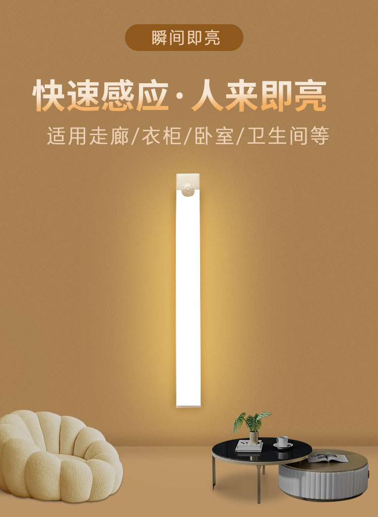 磁気誘導ランプ LED 充電式ナイトライト 人体感知ランプ リビングルーム廊下照明器具 寝室ベッドサイドランプ