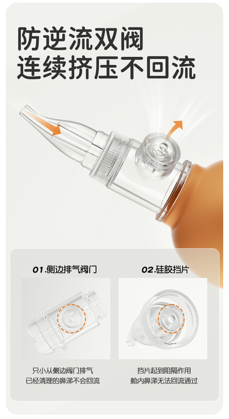 鼻水吸引器のスタイル 逆流防止設計