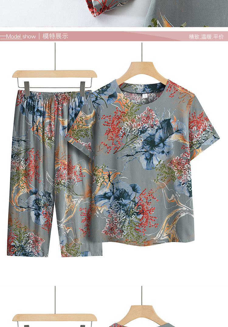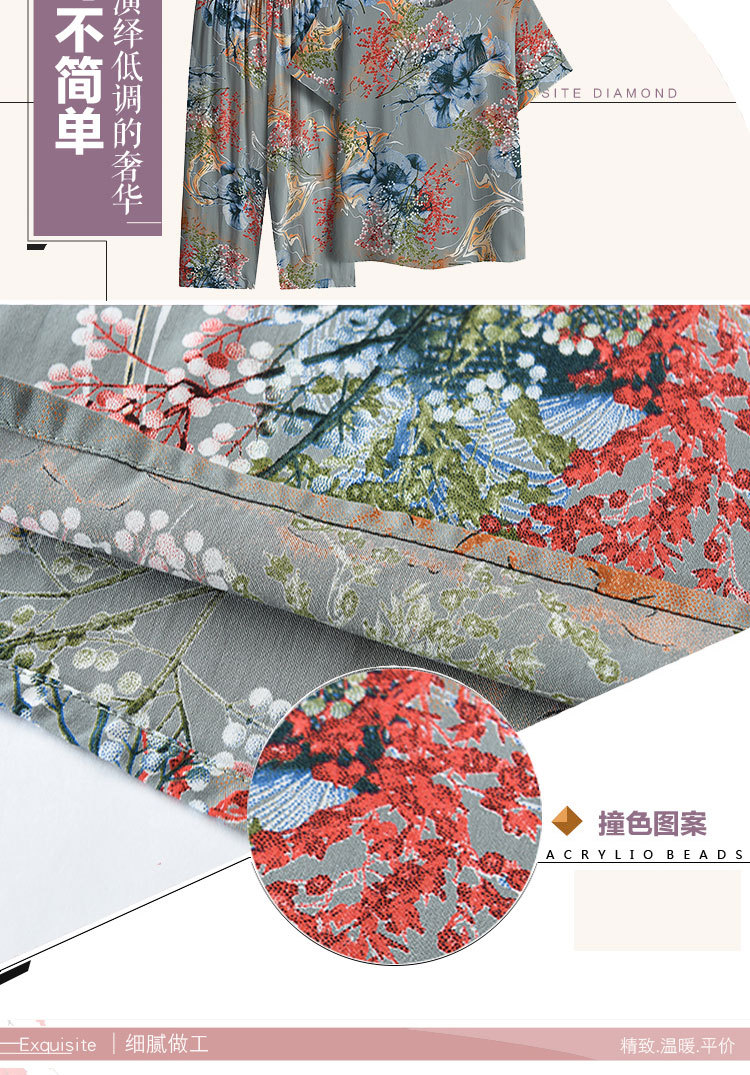 お母さんの服の夏のスーツ40-60歳の中高年の婦人服の半袖tシャツのプリントのスーツはカジュアルでゆったりしています。