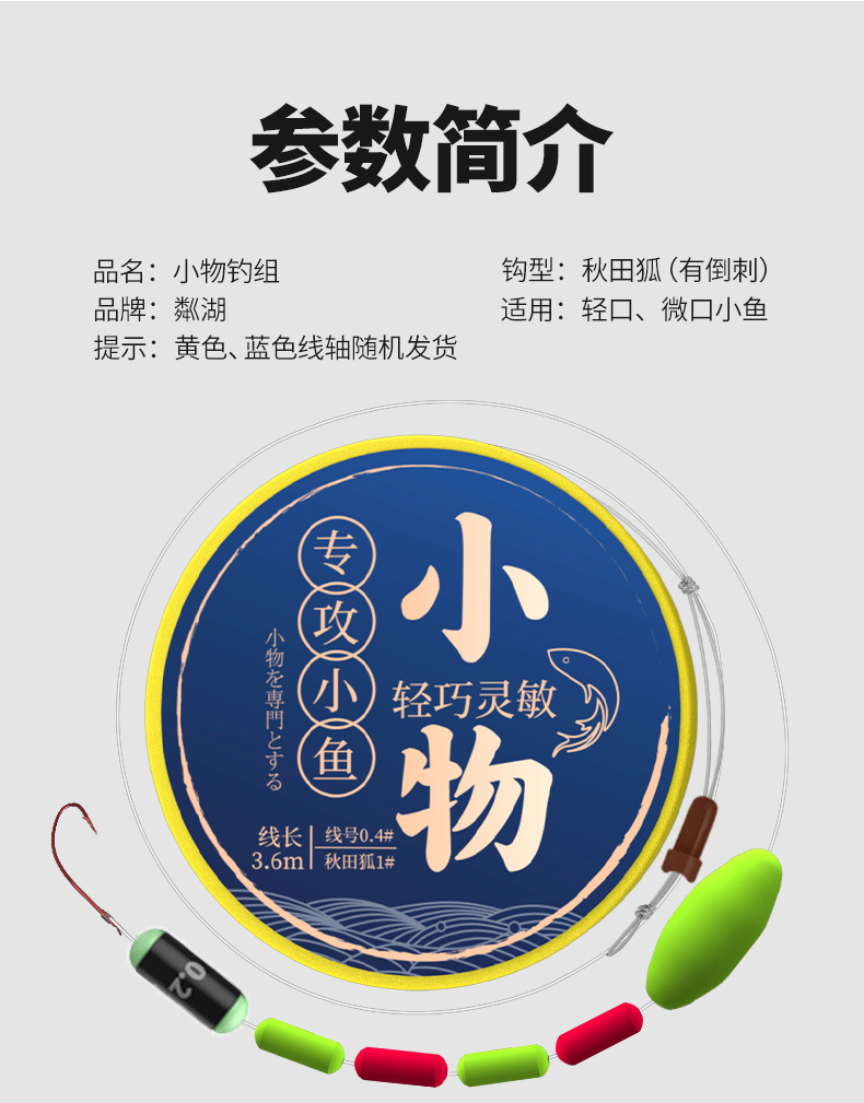 微物迷你秋田狐袖钩1.2米主线微物马口石斑浮漂小物钓溪流钓线组