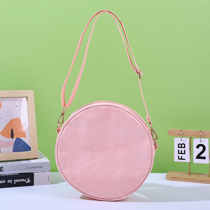 杜邦纸袋定制展会活动单肩带拉链可水洗手提小号圆筒包零钱包纸质