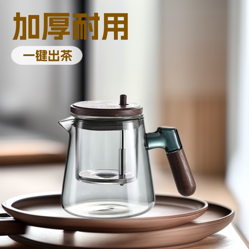 高硼硅玻璃喝水杯 简约家用木扣单层杯 办公室待客耐热玻璃喝茶杯