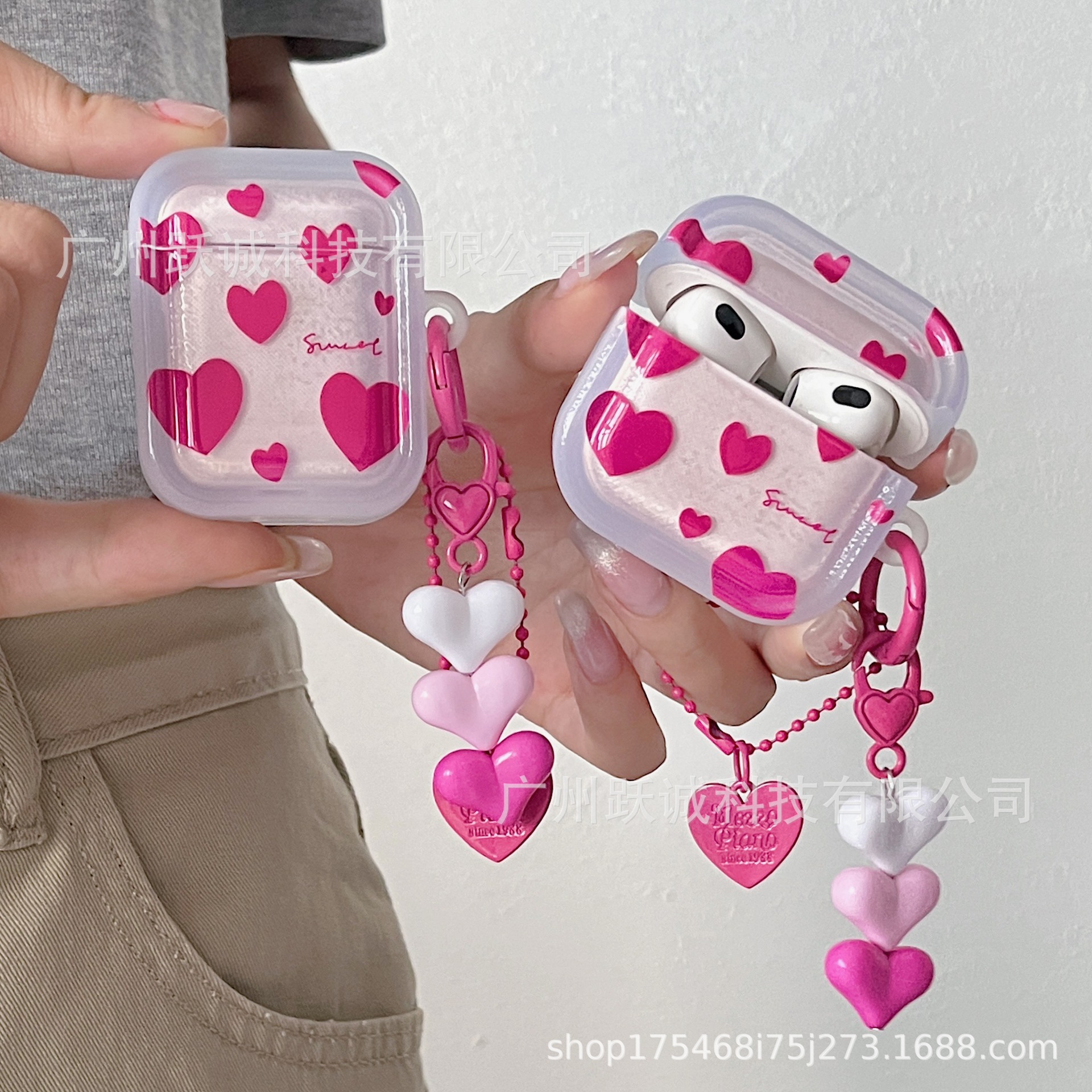 立体適用airpods3保護カバーピンクの愛がぶら下がっています。