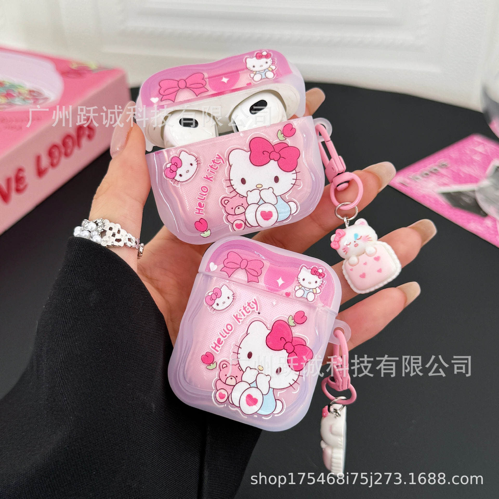 ピンク KT 猫 Apple airpodspro2 ワイヤレス Bluetooth ヘッドフォンケース 1/2/3/4/5 世代保護カバーに適しています