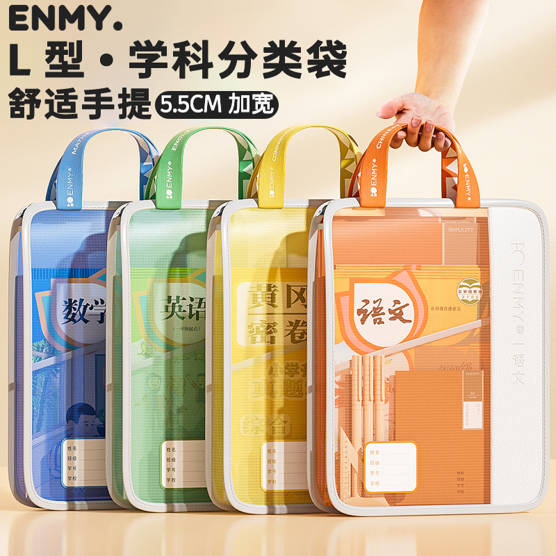 恩米L型科目分類書類袋学生多層大容量科目袋教科書試巻手提げ収納袋